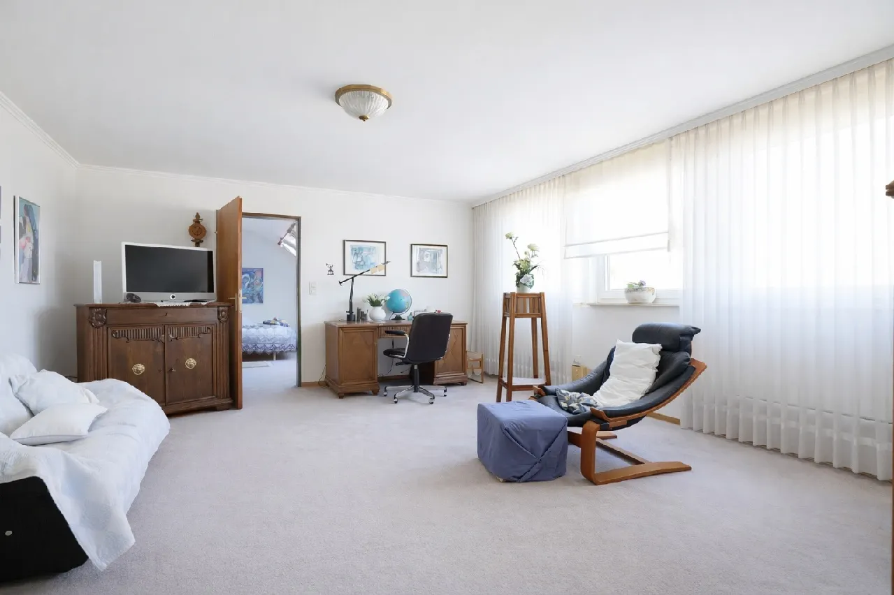 Im Untergeschoss befindet sich die Einliegerwohnung mit separatem Eingang. Diese Einheit verfügt über ein Schlafzimmer, einen Wohnraum, eine kleine Küchenzeile und ein Wannenbad. Ideal zur Vermietung, da der Zugang nicht über den Hausflur der Hauptwohnung erfolgt.