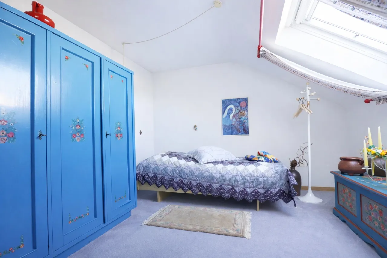 Vom Hausflur aus gelangt man in das Dachgeschoss. Hier wurden die zur Straße liegenden, ehemaligen Bodenräume durch eine Nutzungsänderung zu Wohnraum umgebaut. Zwei Wohn- oder Schlafräume, ein TL-Bad und eine kleine Kochecke sind ein Paradies für Kinder oder andere Familienmitglieder. Die beiden zum Garten liegenden Bodenräume wurden ebenfalls ausgebaut und mit einer Gaube, Fenster, Heizung, Wandverkleidung und Bodenbelägen ausgestattet. Bestens geeignet für Hobby und Freizeit.