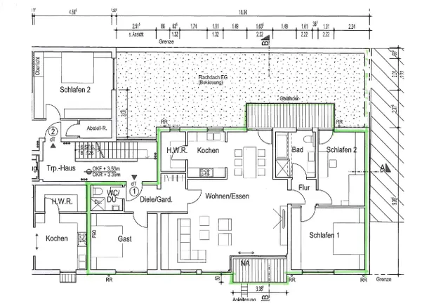 Ein separater Schlaftrakt mit 2 Räumen und einem schönen Bad mit ebenerdiger, grosser Dusche vervollständigen diesen durchdachten Grundriss.