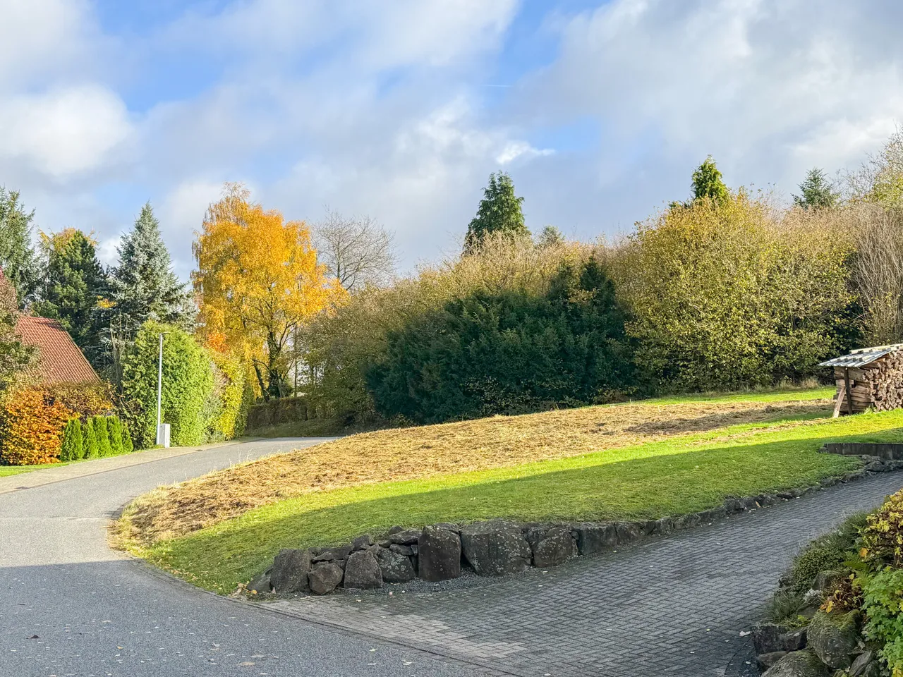 Das Grundstück befindet sich in ruhiger Ortsrandlage von Bölsberg. Es handelt sich um ein Eckgrundstück mit einer Größe von ca. 570 m². Das Gelände ist nur leicht abfallend und bietet einen schönen Weitblick. Die Umgebung ist geprägt von Einfamilienhäusern.