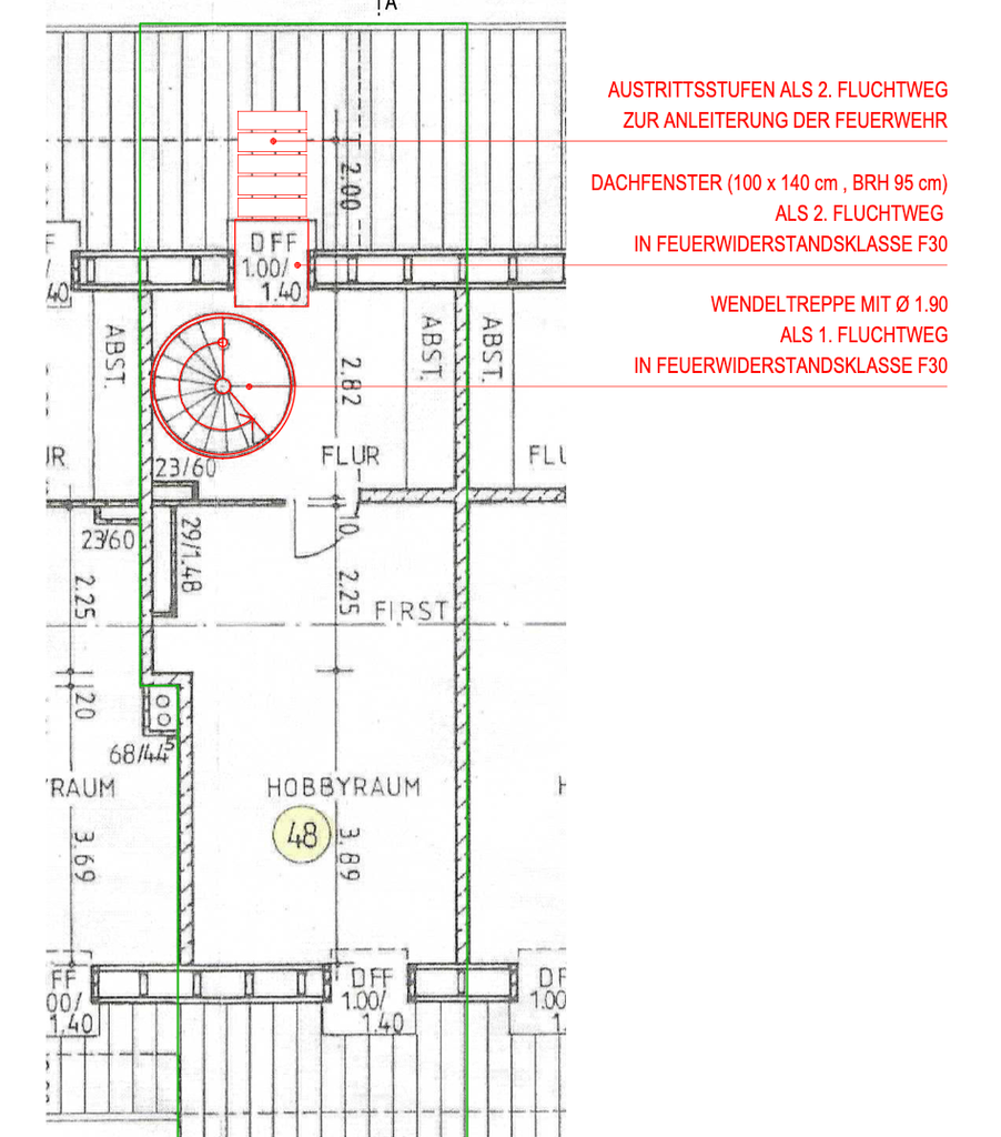 Die Wohnung selbst verfügt über ein geräumiges Wohnzimmer mit Balkonzugang. Der Balkon bietet einen herrlichen Weitblick. Zudem gibt es im Wohnraum einen modernen Kamin sowie eine Essecke. Im unteren Bereich befinden sich ansonsten die Küche und das sanierte Badezimmer. In der zentralen Diele befindet sich die Wendeltreppe die ins ausgebaute Dachgeschoss führt. Oben angekommen finden Sie einen kleinen Vorraum, ideal für einen Bürobereich (Homeoffice). Dahinter das großzügige Schlafzimmer.
