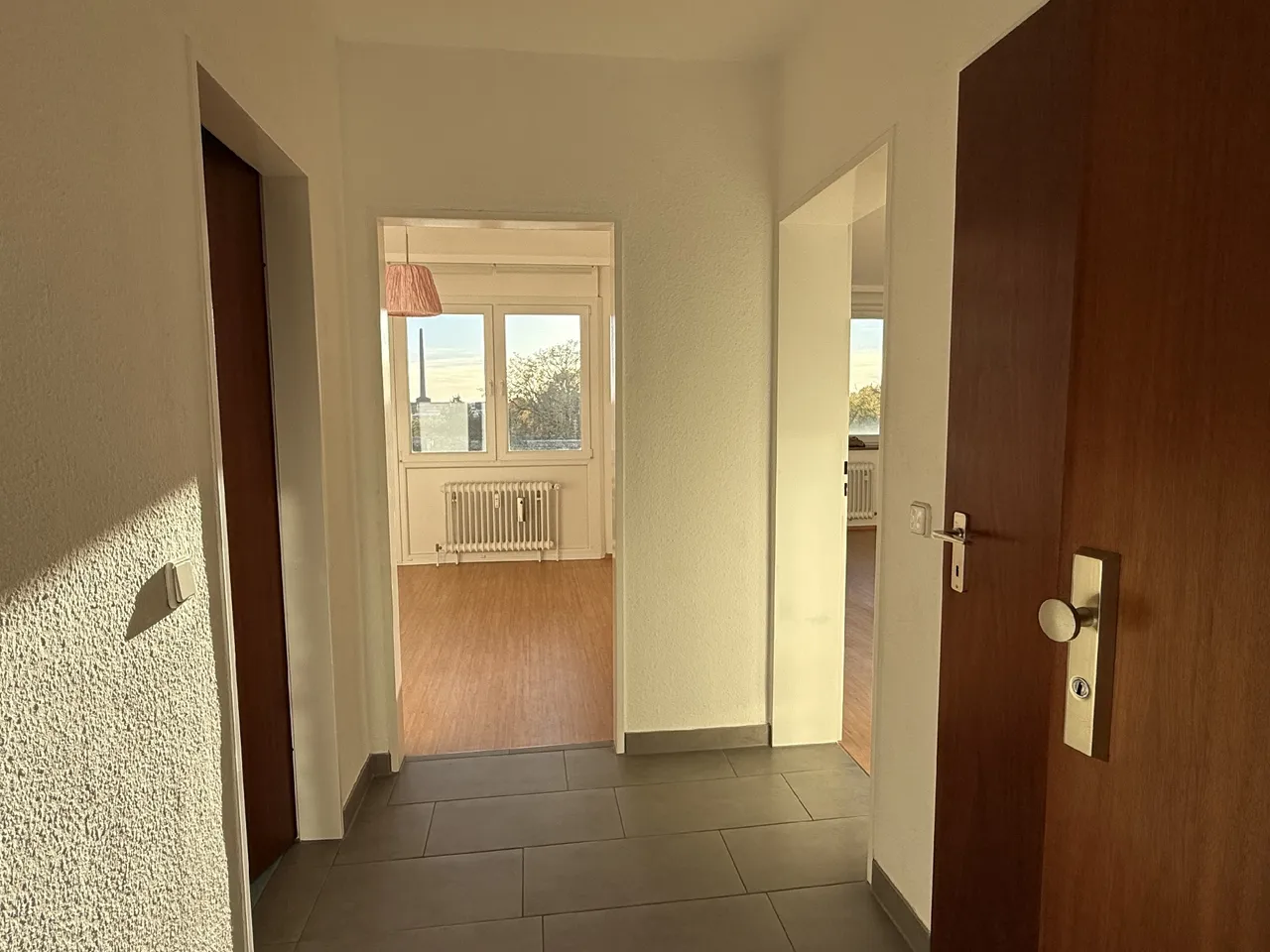 Über einen modernen Flur, welcher Platz für eine kleine Garderobe bietet, gelangen Sie in alle Räume. Zur Linken befindet sich das um 2013 sanierte, innenliegende Wannenbad. Vor Kopf erreichen Sie das helle Schlafzimmer, mit direktem Zugang zur süd-westlich ausgerichteten Loggia. Zur Rechten liegen ein praktischer Abstellraum sowie das Wohnzimmer mit offener Küche. Selbstverständlich bietet auch das Wohnzimmer einen direkten Zugang zur Loggia.