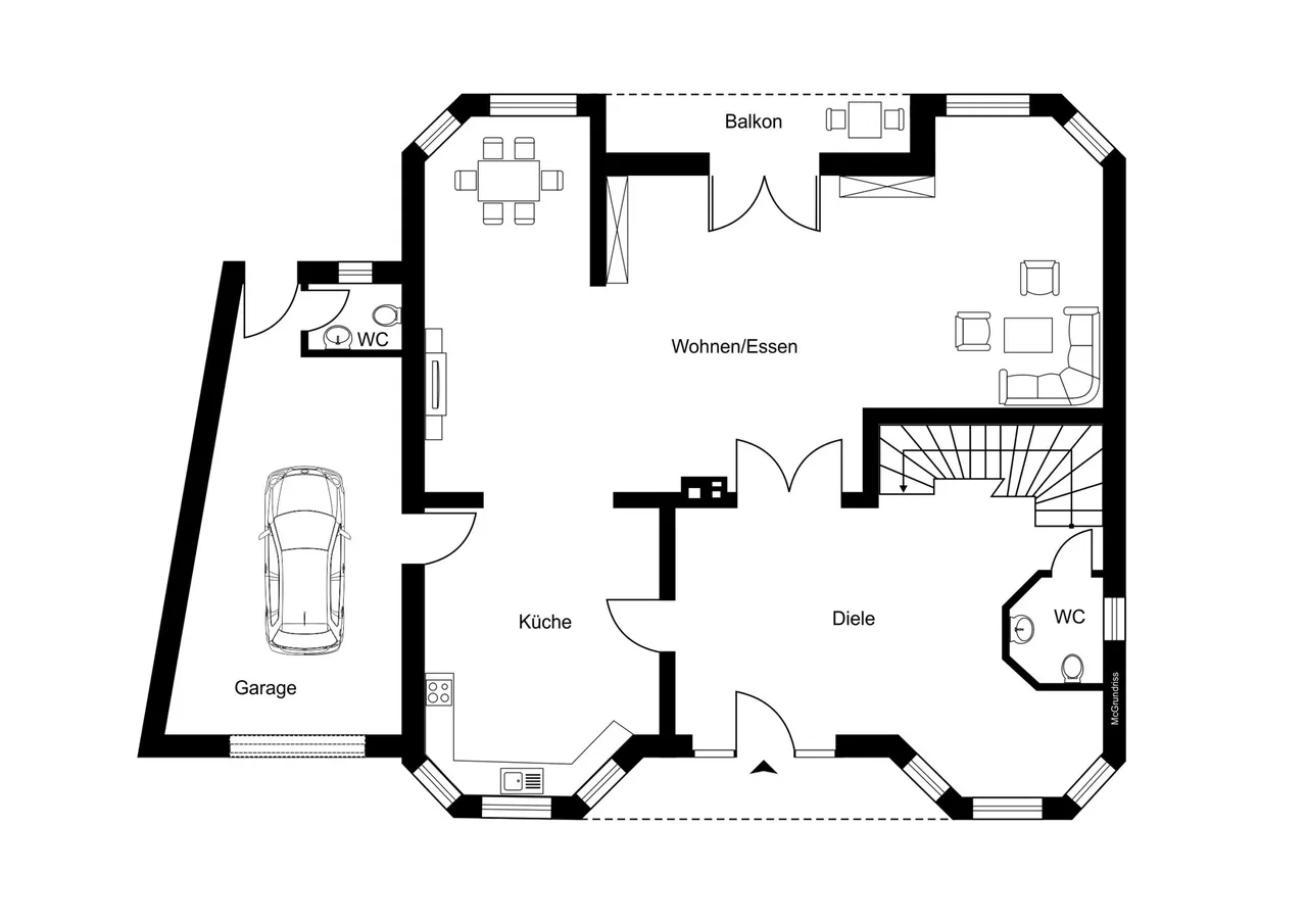 - Garage sowie zwei zusätzliche Außenstellplätze