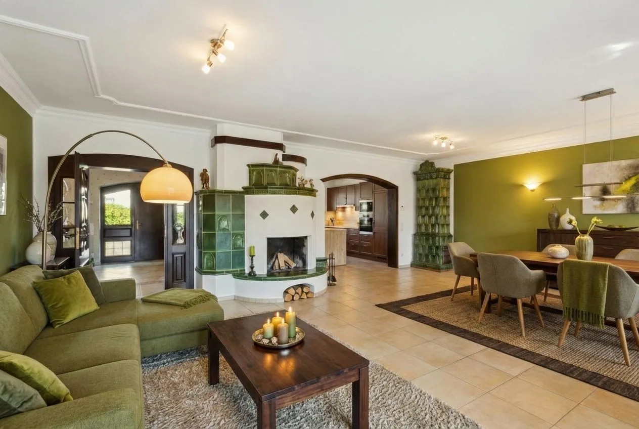 Dieses besondere Einfamilienhaus überzeugt durch eine solide Bauweise, eine klare Grundrissgestaltung und einen gepflegten Garten, der den Außenbereich zu einem besonderen Highlight macht. Bereits beim Eintreten empfängt Sie ein großzügiger Eingangsbereich, von dem aus die offene Wohnküche erreichbar ist. Sie bietet ausreichend Platz für gemeinsames Kochen und fügt sich harmonisch in den angrenzenden Wohn- und Essbereich ein. Dieser besticht durch seine großzügige Gestaltung, einen Kamin sowie den direkten Zugang zur Terrasse.
