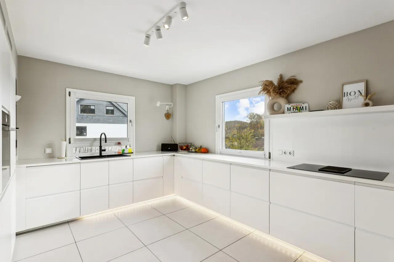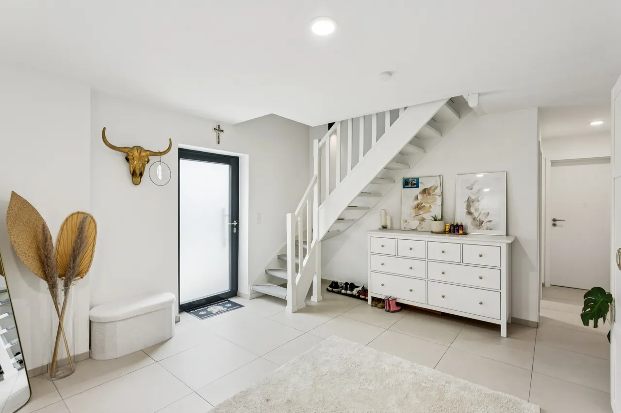 Eine Fußbodenheizung sorgt im gesamten Haus für ein angenehmes Wohnklima, während das integrierte Smart-Home-System – inklusive Philips Hue Beleuchtung und elektrischen Jalousien – bequem per App gesteuert werden kann. Dieses Einfamilienhaus begeistert durch seine hochwertige Ausstattung, seine großzügige Architektur und sein einladendes Wohnambiente. Ein Zuhause, das keine Wünsche offenlässt und in dem sich moderner Wohnkomfort und hoher Lebensstil perfekt vereinen.