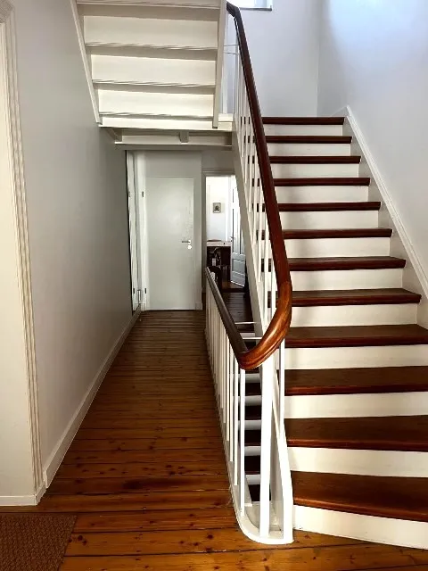 Das rund 219 m² große Grundstück rundet das Gesamtbild mit einem liebevoll angelegten Garten ab, der als Rückzugsort dient. Im Inneren besticht das Haus durch seine Details: original erhaltene Holzdielenböden, die Wärme und Charakter ausstrahlen, teilweise kunstvoll verzierte Stuckdecken, die jedem Raum eine besondere Note verleihen, und eine klare, harmonische Raumgestaltung, die den Blick für das Wesentliche freilässt.