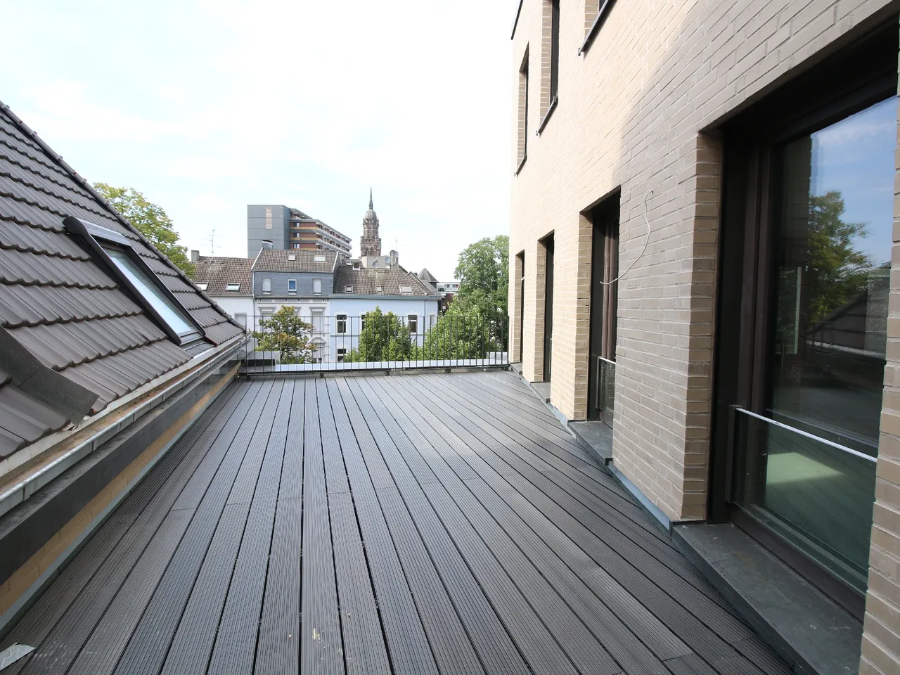 Die Mietfläche 5 im exklusiven Neubauprojekt -Et Bröckske- bietet auf insgesamt ca. 511 m² eine außergewöhnliche Büro- und Verkehrsfläche, die sich über das 3. und 4. Obergeschoss erstreckt. Verbunden durch eine interne Treppe und ergänzt durch eine großzügige Dachterrasse von ca. 100 m², hebt sich diese Fläche deutlich von anderen Büroflächen ab. Der besondere Charme wird durch die Dachschrägen unterstrichen, die nicht nur für eine einzigartige Raumgestaltung sorgen, sondern auch einen beeindruckenden Blick über die Krefelder Innenstadt ermöglichen.