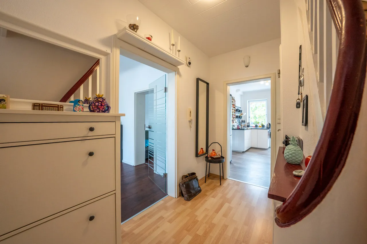 Dieses Reihenmittelhaus aus dem Ursprungsbaujahr 1935 (Wiederaufbau 1950) ist ein Zuhause voller Möglichkeiten. Mit ca. 198 m² Wohnfläche auf drei Ebenen und dem großzügigen, länglichen Grundstück von 508 m² bietet es Raum für Familien, Mehrgenerationen oder kreative Wohnkonzepte. Früher als drei Wohneinheiten genutzt, ist es heute ein durchdachtes Mehrgenerationenhaus, das gleichzeitig Rückzug und Gemeinschaft verbindet – mit Küchenanschluss auf jeder Etage.