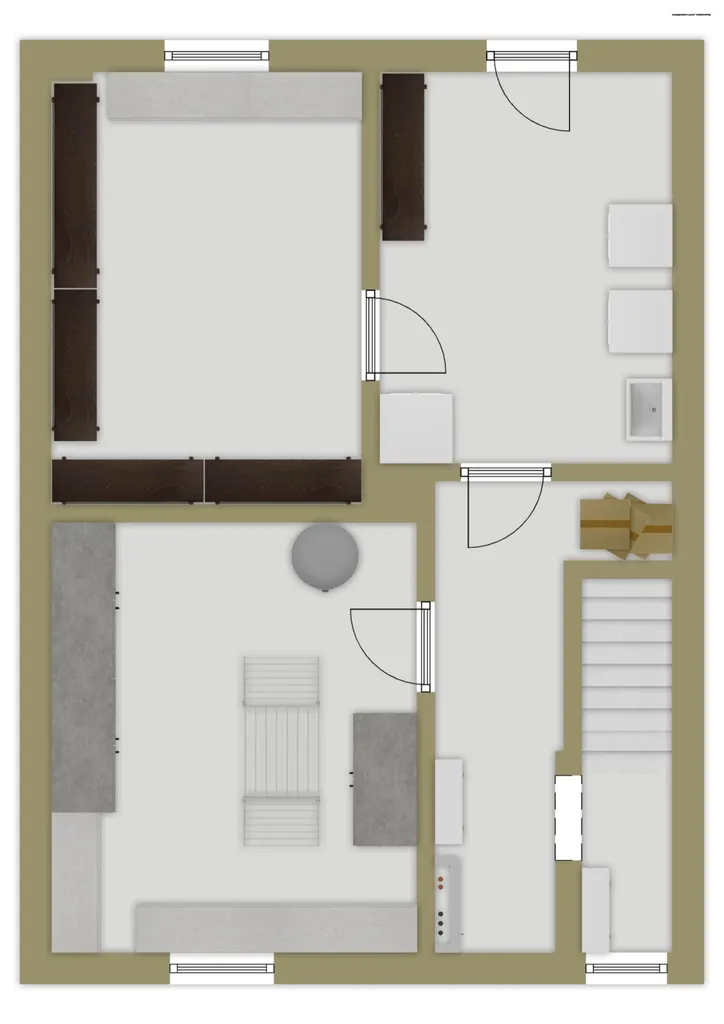Die zweite Wohneinheit erstreckt sich über das 2. Obergeschoss und das Dachgeschoss und bietet ein eigenständiges, großzügiges Wohnkonzept. Hier erwarten Sie ein Wohn- und Essbereich, Küche, zwei Bäder, weitere Schlafzimmer sowie ein Büro- oder Arbeitsbereich. Ein offener Balkon ergänzt den Wohnkomfort und bietet zusätzlichen Freiraum im Außenbereich.