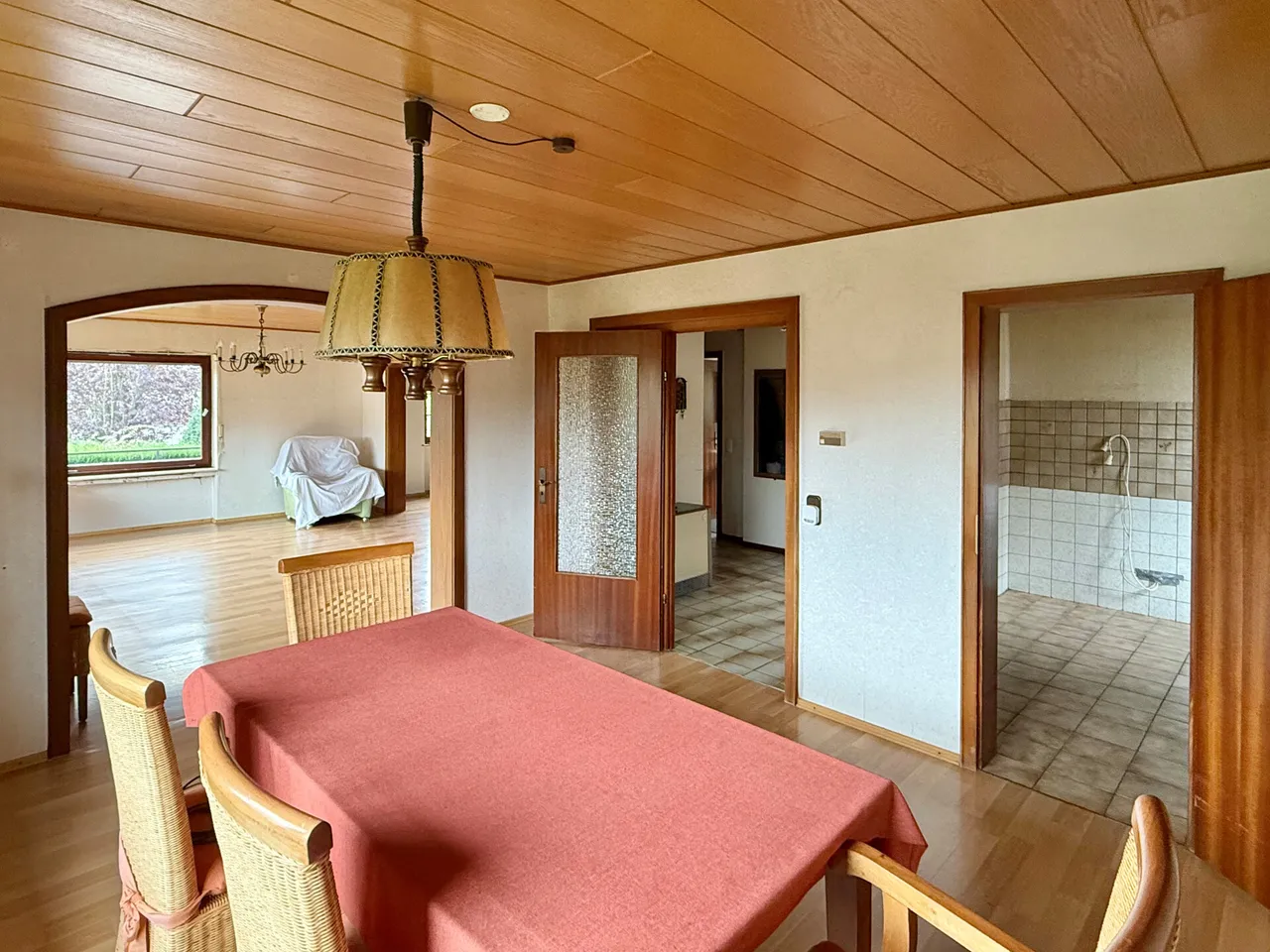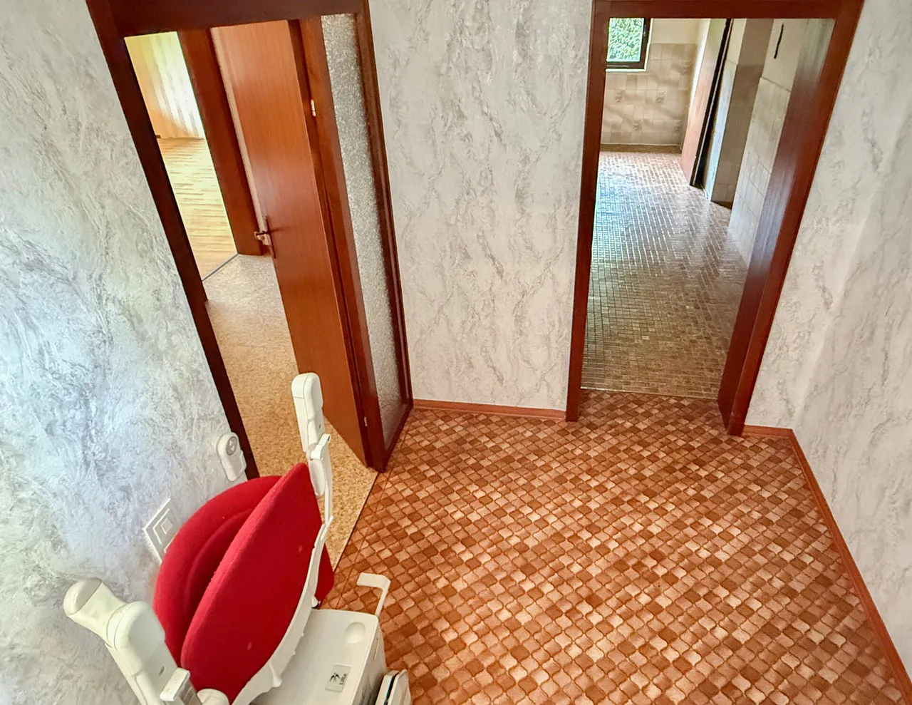 Das um 1970 erbaute Objekt überzeugt durch eine Wohnfläche von rund 155 m², verteilt auf zwei Ebenen und bietet zahlreiche Gestaltungsmöglichkeiten. Auf dem ca. 593 m² großen Grundstück finden Sie zwei Einzelgaragen und einen gepflegten Gartenbereich vor - die große Thuja im hinteren Bereich wurde inzwischen entfernt. Die Immobilie lässt sich ideal als klassisches Einfamilienhaus nutzen: Im oberen Bereich befinden sich die Hauptaufenthaltsräume wie Wohn-, Ess- und Küchenbereich. Hervorzuheben ist hier das bereits modernisierte Badezimmer mit bodentiefer, offener Dusche und altersgerechter Ausstattung. Die untere Etage bietet ausreichend Platz für Schlafzimmer und weitere Räume. Alternativ wäre das Haus mit entsprechenden Maßnahmen in zwei separate Einheiten aufteilbar. So könnten zwei eigenständige 2ZiKB Wohnungen entstehen - ideal für Mehrgenerationenwohnen, für heranwachsende Kinder oder auch zur Vermietung. So eignet sich das Haus sowohl für Familien, die viel Raum benötigen, als auch für Paare oder ältere Personen, die Wert auf eine altersgerechte Nutzung legen. Dank des vorhandenen Balkons sowie der überdachten Terrasse mit angrenzendem Wintergarten bietet die Immobilie außerdem schöne Rückzugsorte.