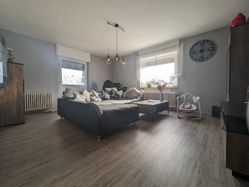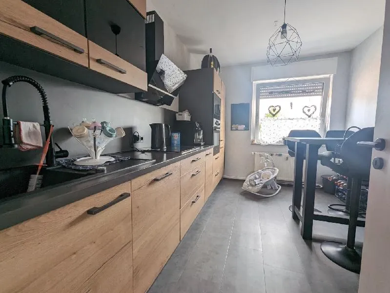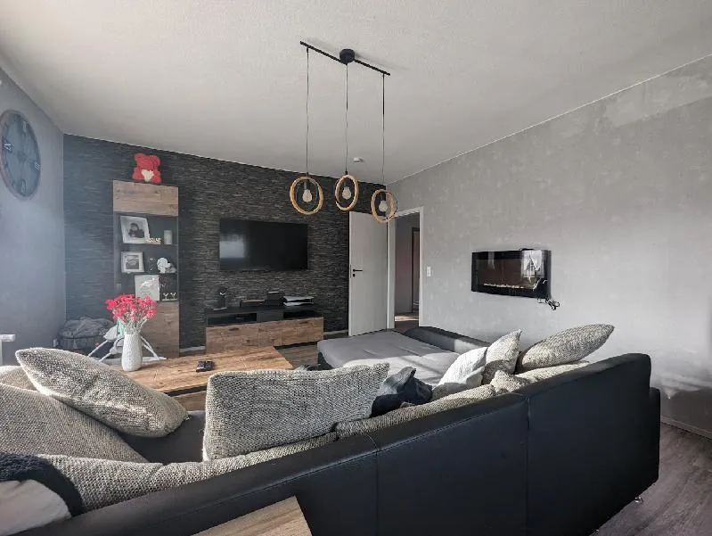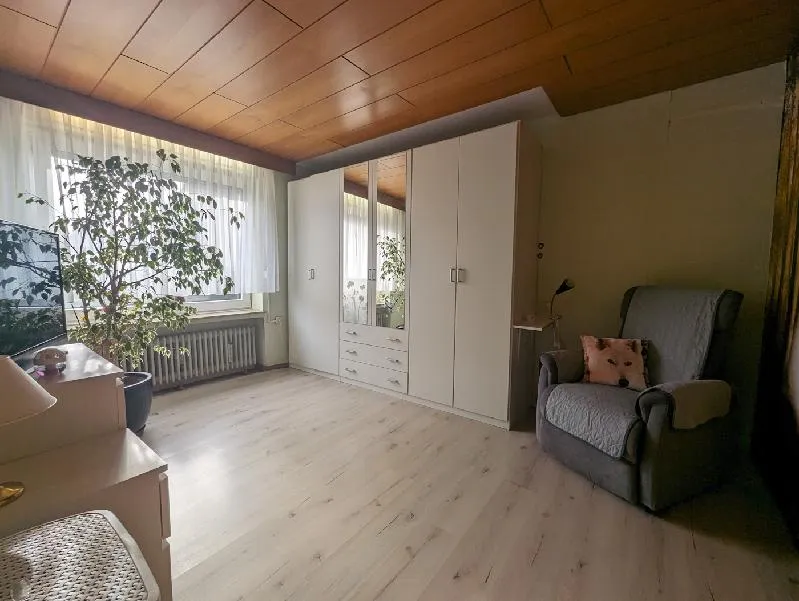 Wohnung Obergeschoss wurde saniert 2021-2023: Vinyl-Oberböden, Badezimmer komplett, neue Wasserleitungen im Bad, Handtuchheizkörper, Wohnungstüren, Einbauküche, neue Elektroleitungen, Klima-Splitgerät im Schlafzimmer, teilweise neue Fenster und neue Balkontüre