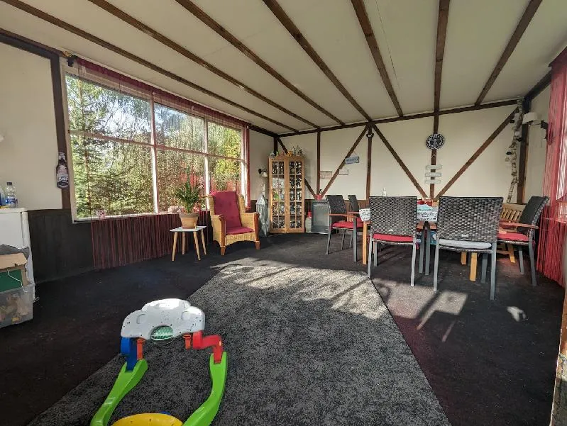 Das Haus umgibt viel Rasen - leicht und mit wenig Zeitaufwand in den Griff zu kriegen- es hat zudem ein sensationell großes Gartenhaus mit Freisitz und ein extra Spielehaus für die Kleinen.