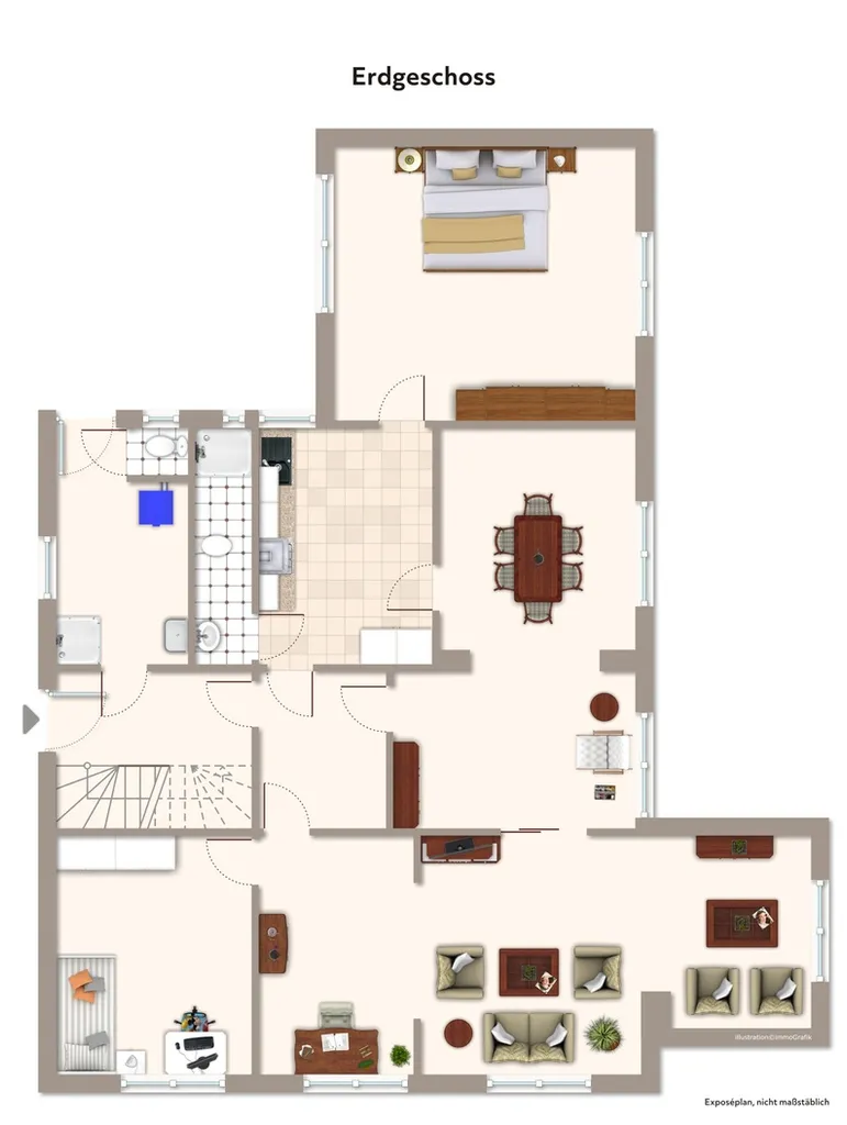 Das Treppenhaus ist übrigens so gestaltet, dass Sie die oberen Etagen als eigenständige Wohnung nutzen könnten.