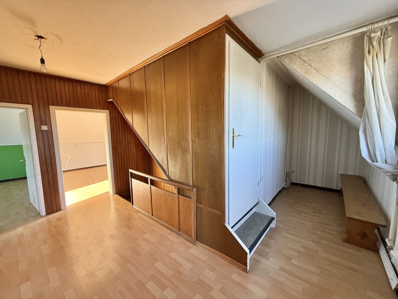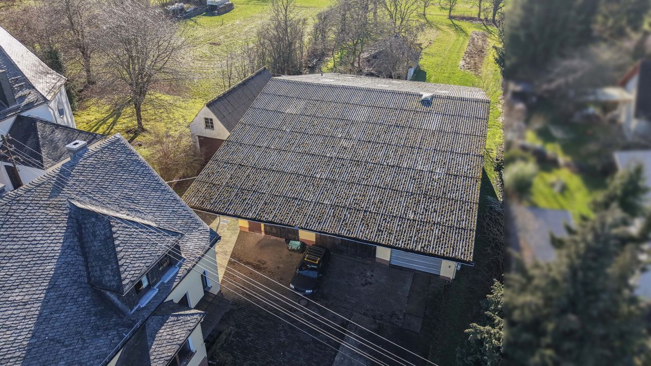 Dieses renovierungsbedürftige Einfamilienhaus aus ca. 1950 bietet auf rund 129 m² Wohnfläche und einem weitläufigen Grundstück von ca. 1.500 m² viel Platz. Der zweigeschossige Massivbau überzeugt mit einer guten Raumaufteilung: Im Erdgeschoss befinden sich ein Schlafzimmer, ein großer Wohn- und Essbereich mit Kaminofenanschluss, eine Küche sowie ein Gäste-WC – ideal für ältere Personen oder barrierearme Wohnkonzepte. Im Obergeschoss stehen drei weitere Zimmer und ein Bad bereit. Der Vollkeller mit vier Räumen sorgt für viel Stauraum. Auf dem Grundstück befinden sich außerdem eine große ehemalige Scheune /z.T. vermietet mit drei Teilbereichen sowie ein Garagengebäude, die vielfältige Möglichkeiten für Hobbys, Werkstatt, Lager oder zusätzliche Fahrzeuge bieten. Die großzügige Hofeinfahrt schafft weitere Stellplätze.