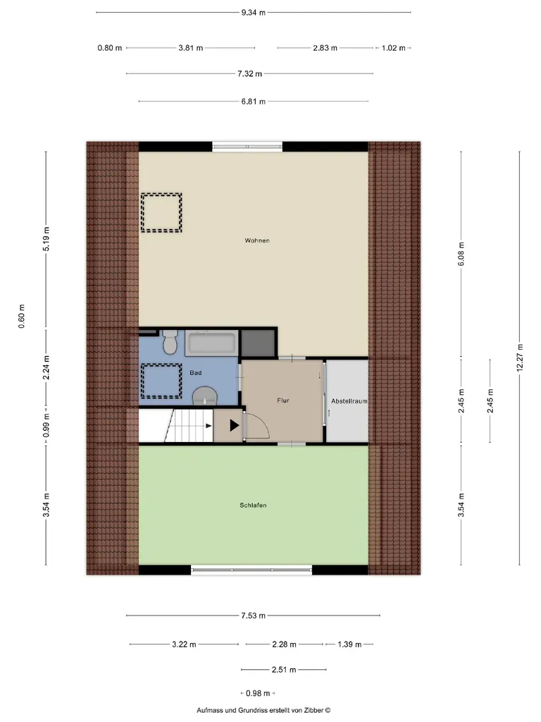 Wohnflächenberechnung OG: 77,30m² (neu erstellt)