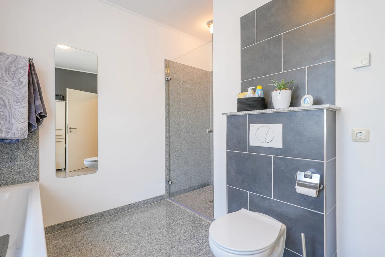 Das stilvolle Tageslichtbad bietet mit einer bodengleichen Dusche und einer Badewanne höchsten Komfort – ein Ort zum Abschalten und Wohlfühlen. Das Schlafzimmer ist bewusst ruhig ausgerichtet und sorgt für erholsame Nächte. Ein weiteres Zimmer steht Ihnen flexibel als Kinderzimmer, Gästezimmer oder inspirierendes Homeoffice zur Verfügung. Ein separater Abstellraum sorgt für Ordnung und Funktionalität im Alltag.