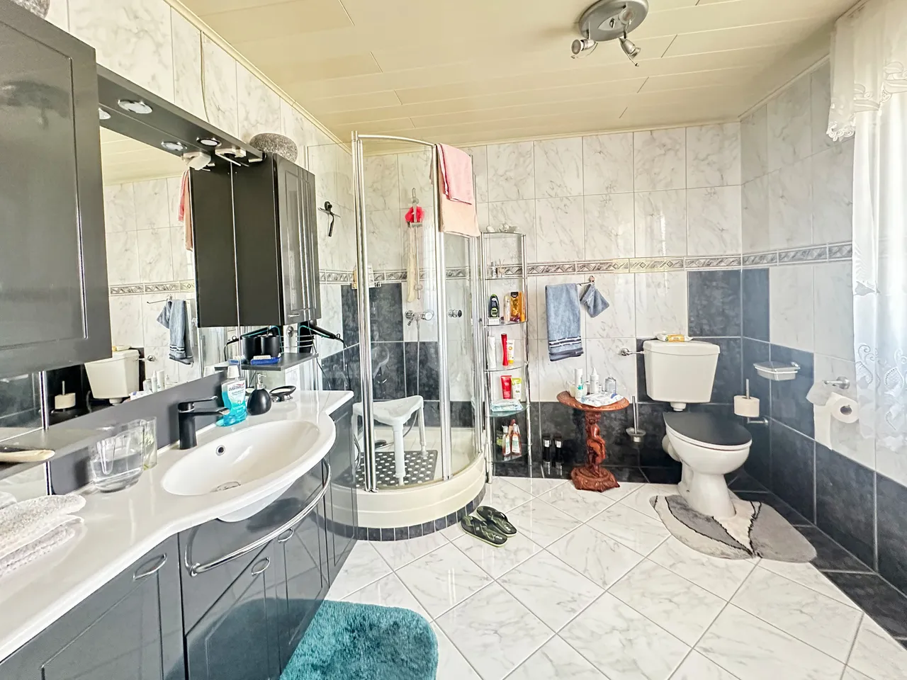 Die Immobilie bietet Ihnen viel Platz und eine ideale Basis für Ihre eigenen Wohnträume. Das unterkellerte Ein-/Zweifamilienhaus wurde um 1963 in massiver Bauweise errichtet und überzeugt mit einer großzügigen Wohnfläche von ca. 197 m². Im Untergeschoss befinden sich eine kleine Wohnung mit Flur, ein Badezimmer mit Wanne, eine Küche, ein Wohnzimmer mit einer Essecke sowie ein Schlafzimmer und ein Kinderzimmer. Das Erdgeschoss beherbergt ein weiteres Badezimmer mit Dusche und Infrarotkabine, ein geräumiges Esszimmer, ein Wohnzimmer, ein Schlafzimmer, eine Küche, einen Hauswirtschaftsraum (HWR) sowie einen überdachten Balkon/Terrasse, der zum Verweilen einlädt. Im ausgebauten Dachgeschoss sind drei weitere Zimmer untergebracht - hier wurde 2003 die Elektrik erneuert. Ihre PKW finden in der Garage oder auch im Innenhof ausreichend Platz.