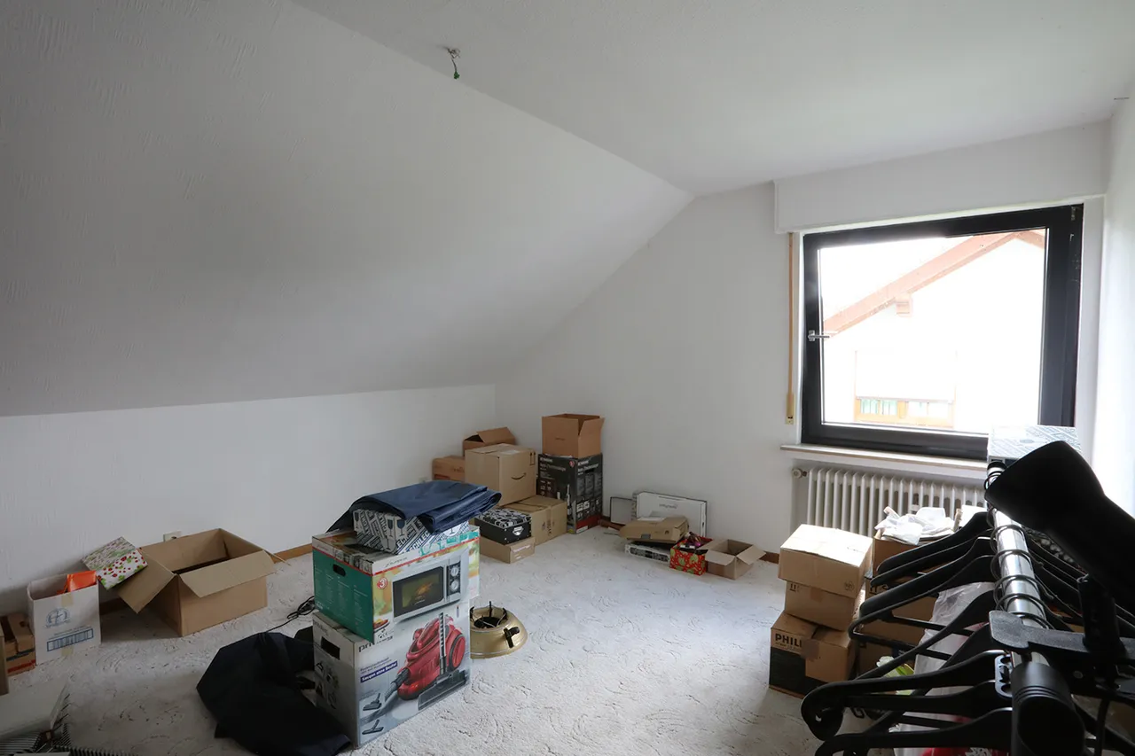 Das in den 70ern erstellte Haus verfügt im EG über eine sehr großzügige 3 Zimmer Wohnung mit Bad und WC sowie SSW-Terrasse - im DG sind es 2 1/2 Zimmer mit Wannenduschbad und Balkon. Ein weiteres Zimmer ist direkt aus dem Treppenhaus zu begehen und kann somit beiden Wohnungen dienen oder auch mit einer kleinen Umbaumaßnahme der DG-Whg. zugeordnet werden. Es ist voll unterkellert, nebst Gartenausgang und verfügt über einen pflegeleichten und schönen Garten. Trotz guter Pflege entspricht einiges noch dem Baujahr u. sollte erneuert werden: Haustüranlage, Fenster, Heizung (2005), Heizkörper (noch in Nischen), Elektro, DG-Bad, EG-Terrasse, Kamineinsatz, Oberböden u. Malerarbeiten ... Wir schätzen den Aufwand auf gut 90.000 EUR.
