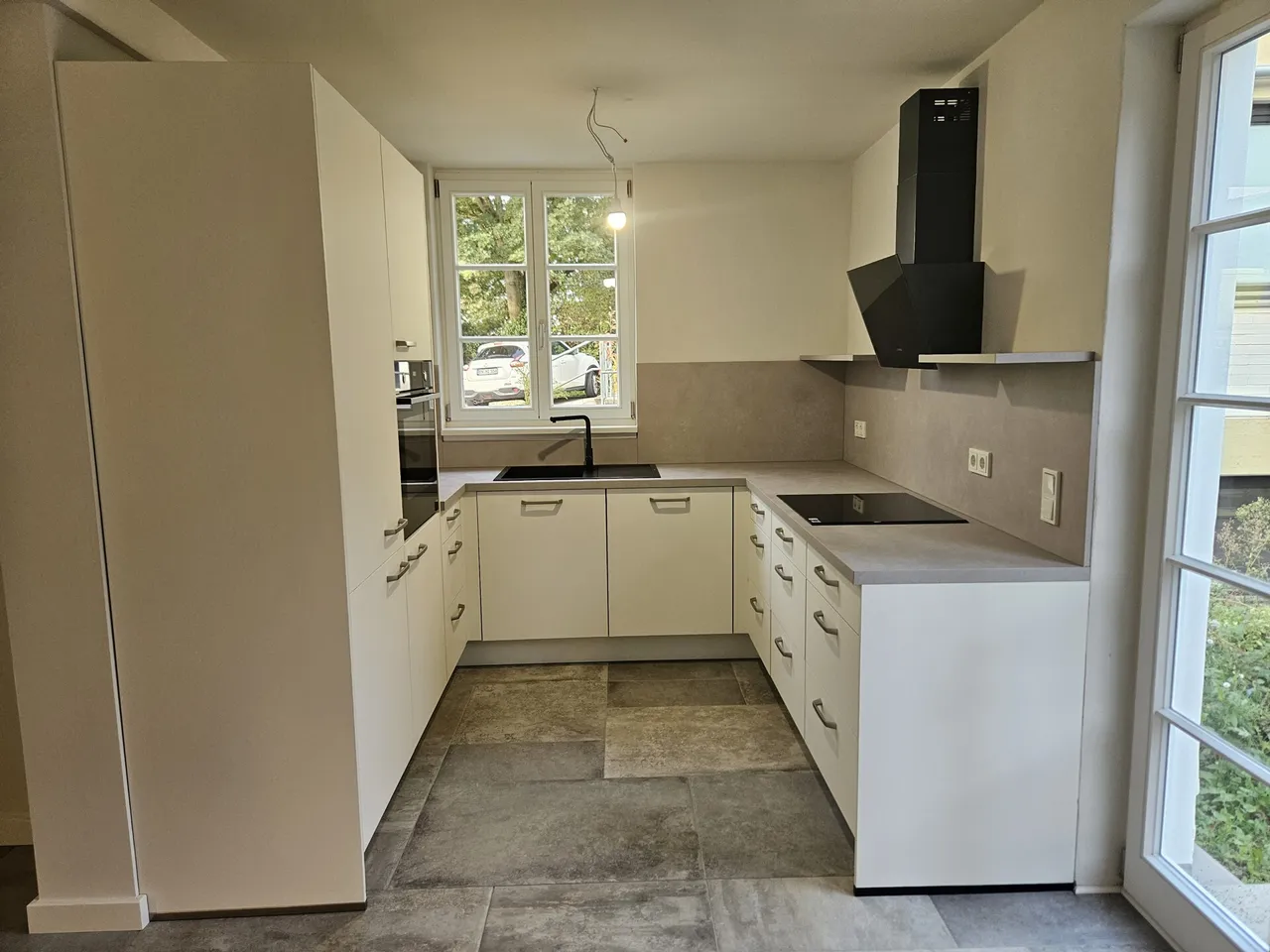 Auf zwei großzügigen Etagen verteilen sich vier helle Zimmer, darunter zwei gemütliche Schlafzimmer und zwei stilvoll ausgestattete Badezimmer. Die hochwertige Ausstattung sorgt für ein exklusives Wohngefühl und erfüllt auch gehobene Ansprüche. Die moderne Einbauküche ist bereits vollständig integriert und im Mietpreis enthalten – ideal für alle, die direkt einziehen und sich wohlfühlen möchten.