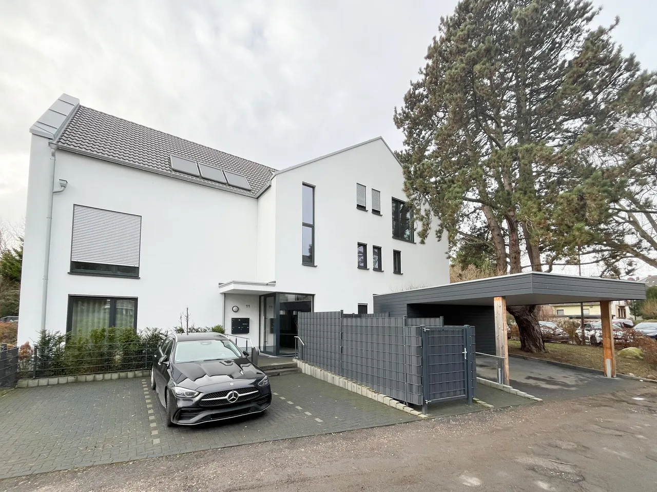 Für jede Wohnung sind ein Carportstellplatz sowie ein weiterer Außenstellplatz vorgesehen.