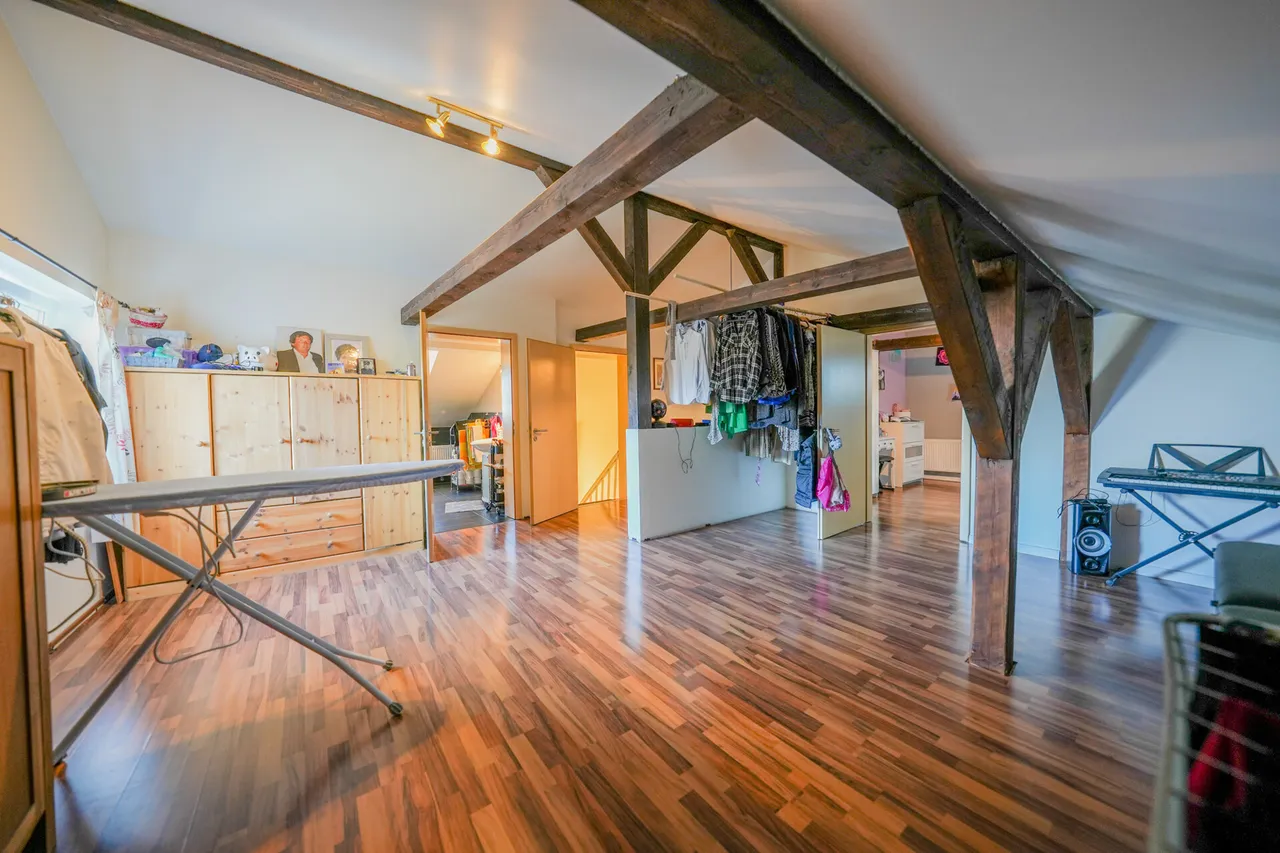 Das Dachgeschoss ist ideal für Kinder, Gäste oder kreative Nutzungsideen: Zwei helle Zimmer, ein offener Hobby- und Wohnbereich sowie ein großzügiges Tageslichtbad mit Badewanne bieten Rückzugs- und Entfaltungsmöglichkeiten.