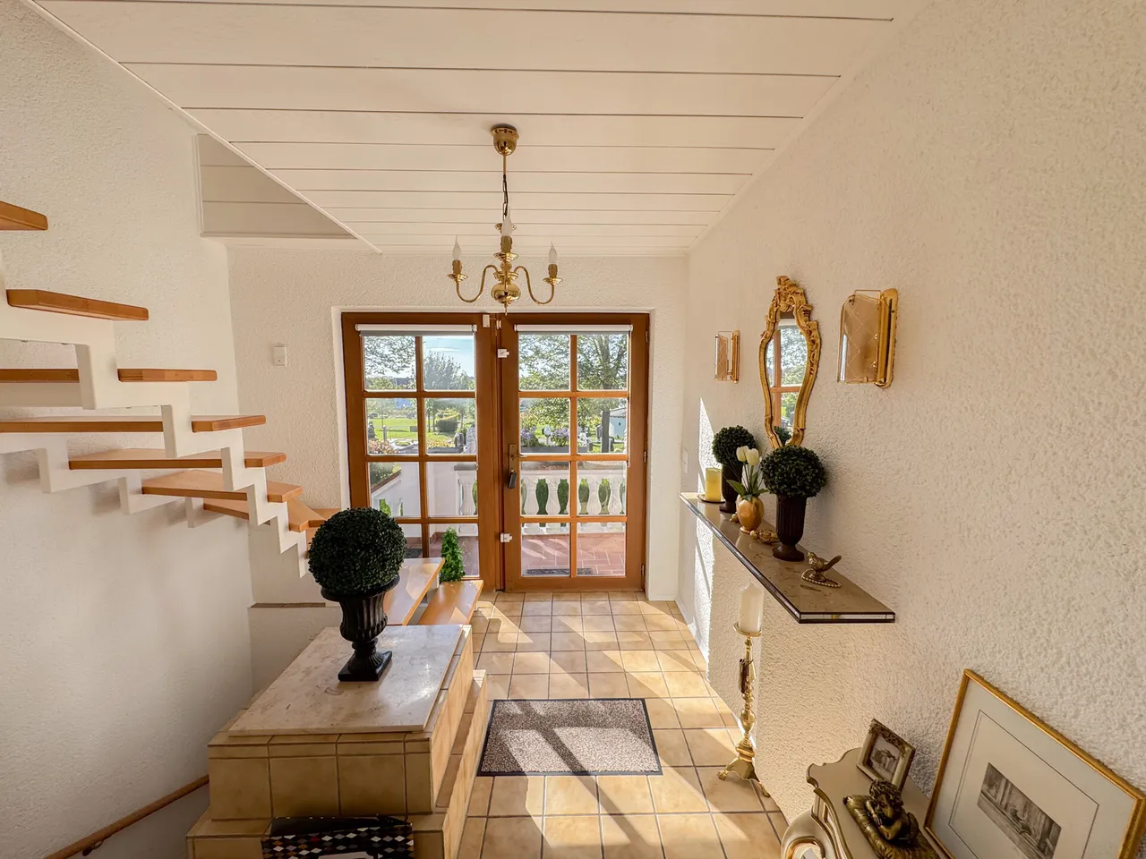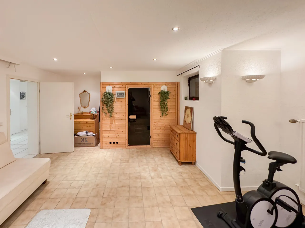 Dieses massive Einfamilienhaus wurde ca. 1990 erbaut und erstreckt sich über eine Etage, wodurch Wohnen auf einer Ebene ermöglicht wird. Die Wohnfläche von ca. 142 m² umfasst ein klimatisiertes Schlafzimmer mit angrenzender Ankleide, ein Büro/Kind, ein Badezimmer sowie Gäste. Der begehbare Kleiderschrank sorgt für Stauraum und Komfort. Die Einbauküche lädt zum Kochen und Verweilen ein. Ergänzend sorgt ein luxuriöser Wellnessbereich mit Sauna und Pool für Entspannung. Im EG befinden sich zudem der Wohnbereich und das Esszimmer mit Zugang zum Garten, sodass Sie nahtlos Innen- und Außenwohnen genießen. Das ca. 592 m² große Grundstück bietet eine tolle Fernsicht. Der gepflegte Garten mit Pool eignet sich hervorragend für gesellige Abende oder ruhige Momente im Freien. Das Haus ist unterkellert und bietet vielseitige Nutzungsmöglichkeiten-neben dem Hobbyraum mit Sauna und Duschbad mit WC stehen zusätzliche Stauraumflächen und Weiteres zur individuellen Nutzung bereit. Das DG bietet zudem Ausbaupotenzial: Raumhöhe und Raumgestaltungsmöglichkeiten ermöglichen eine flexible Erweiterung bei Bedarf, z. B. als zusätzlicher Wohn- oder Arbeitsbereich, Gästezimmer oder Mansardenzugang. Der Hofbereich mit großer Garage sorgt für ausreichend Stellfläche für Ihre PKWs.
