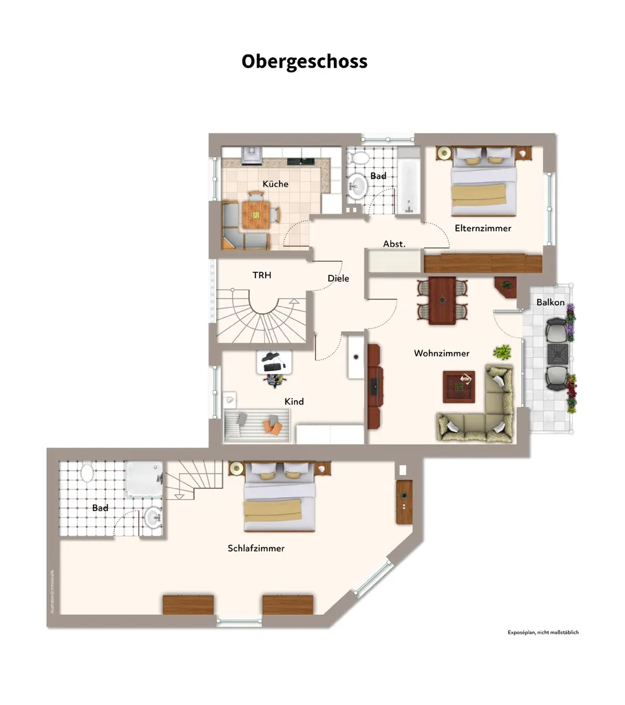 Die Obergeschosswohnung umfasst ca. 69 m² Wohnfläche und eignet sich hervorragend als Einliegerwohnung, Gästeetage oder als Erweiterung des Hauptwohnraums.