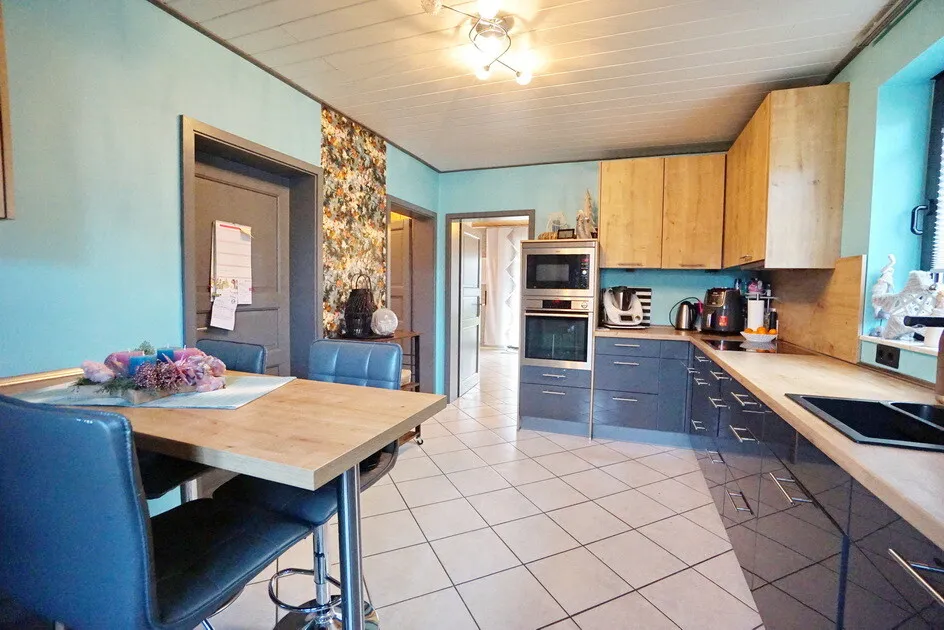 Bereits bei Betreten des Hauses wird spürbar, in welchem sehr gepflegten Zustand sich die Immobilie befindet. Im Flur sind ein Gäste-WC und praktischer Garderobenbereich vorhanden. Zudem ist hier Platz für Schränke und Abstellmöglichkeiten. Das Erdgeschoss besticht durch ein großzügiges Wohn-/Esszimmer, das eine wohnliche Atmosphäre bietet. Die angrenzende Küche mit Einbauküche lädt zum Kochen und geselligem Beisammensein ein. Ein praktischer Hauswirtschaftsraum rundet das Raumprogramm ab. Diese Räumlichkeiten verteilen sich auf ca. 65 m². Zahlreiche Fensterelemente im Wohnzimmer bieten einen schönen Ausblick in den liebevoll angelegten Garten.