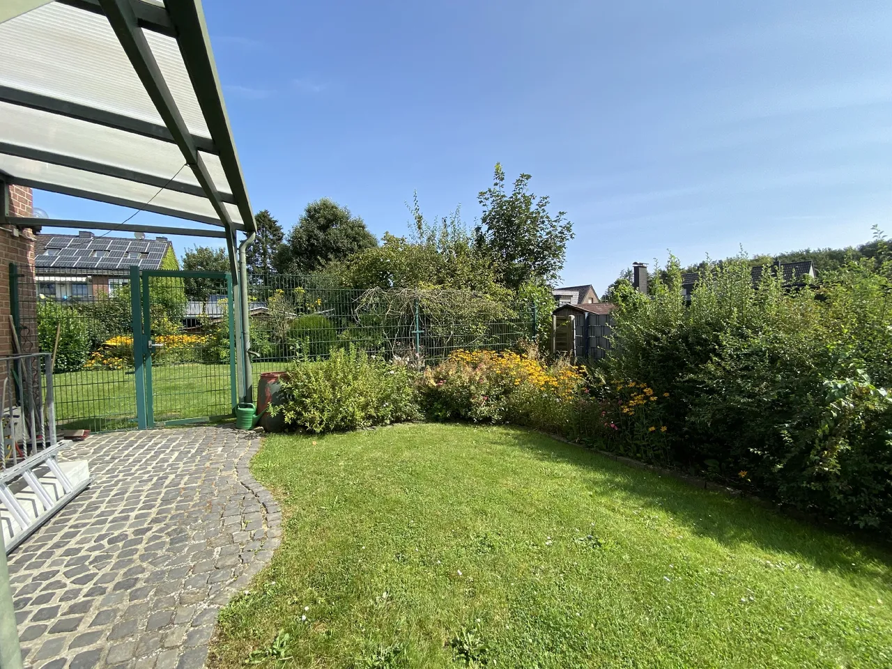 Das große Grundstück bietet neben einem weitläufigen Garten, welcher zum ausgiebigen Gärtnern, Spielen und Entspannen einlädt, die Gestaltung eines üppigen Vorgartens mit zusätzlichem Platz für Fahrräder und Mülltonnen. Ein nahezu uneinsehbarer Wintergarten, welcher seitlich angebaut wurde, rundet den tollen Außenbereich ab.
