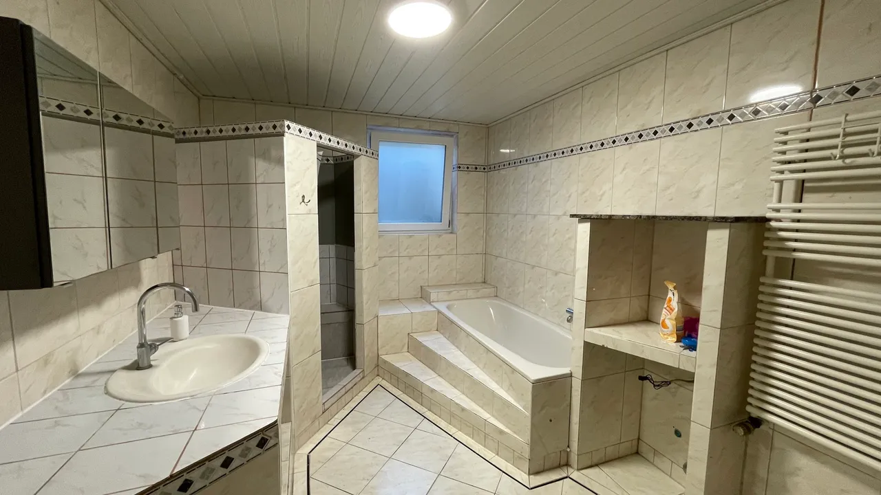Dieses freistehende ZFH wurde in den 70er Jahren auf einem ca. 549 m² großen Grundstück in ruhiger Lage von Hennef-Blankenberg errichtet. Auf 223 m² Wohnfläche verteilen sich 2-3 WE. Das Raumkonzept im EG überzeugt mit einem weitläufigen Wohn-/Essbereich, einem Balkon sowie drei Schlafzimmern, einer Küche und einem Badezimmer. Im UG dieser Einheit befindet sich ein nahezu ebenerdiger Zugang zum Garten, der eine wohnliche, abgeschlossene Ebene bildet – eine Aufteilung in eine dritte Wohneinheit ist hier möglich. Der Ausbau dieser Einheit zu Wohnzwecken ist jedoch nicht genehmigt - eine Nachgenehmigung ist aber möglich. Die vermietete Wohneinheit im DG mit ca. 108 m² erzielt aktuell eine monatliche Kaltmiete in Höhe von 800 € und bietet fünf Zimmer, ein Badezimmer, eine Küche sowie eine eigene Terrasse. Ausgebaut wurde das Dachgeschoss Ende der 90er Jahre. 2018 folgte eine Dämmung des Daches (160 mm) sowie die Dämmung der Außenfassade (120 mm). Neben der Dämmung wurden 2018 die Fenster sowie die gesamte Elektrik erneuert - 2023 folgte noch ein Austausch des Sicherungskastens. Erwähnenswert ist auch die 2018 installierte PV-Anlage mit 5 KWP + Speicherbatterie. Zwei Garagen und drei zusätzliche Außenstellplätze bieten großzügige Parkmöglichkeiten.