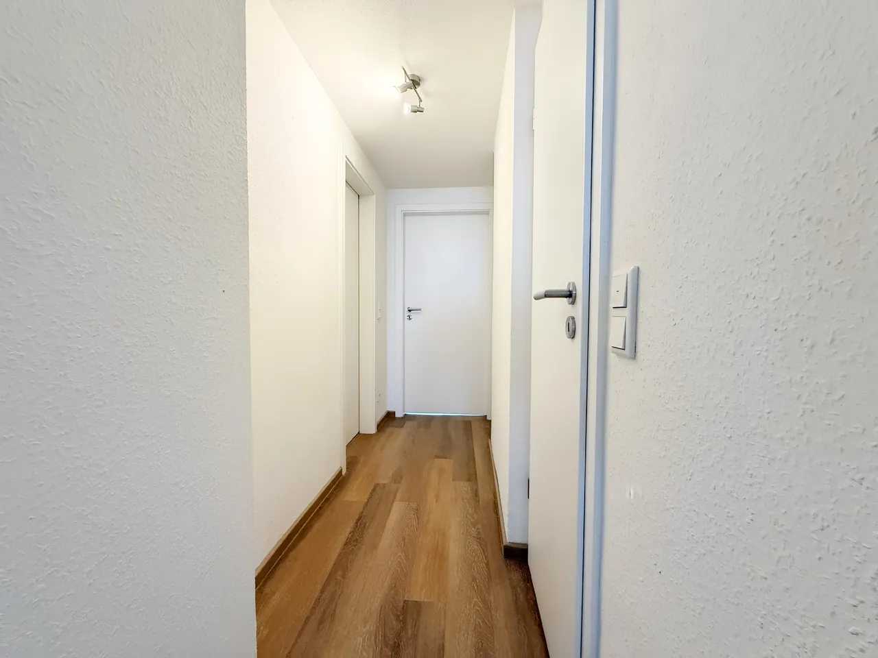 Beim Betreten der Wohnung gelangen Sie zunächst in die Küche, die als zentraler Dreh- und Angelpunkt dient. Rechterhand öffnet sich das großzügige Wohnzimmer mit ca. 25 m² Fläche, das ausreichend Platz für eine gemütliche Wohnlandschaft und eine Essecke bietet. Über eine kleine Diele erreichen Sie das innenliegende Wannenbad, das separate WC sowie ein vielseitig nutzbares Arbeits- oder Gästezimmer. Von hier aus betreten Sie auch die weitläufige Terrasse mit knapp 20 m² ein echtes Highlight der Wohnung. Sie lädt an sonnigen Tagen zu entspannten Stunden im Freien ein und bietet Raum für Pflanzen, Loungemöbel oder gesellige Abende mit Freunden.
