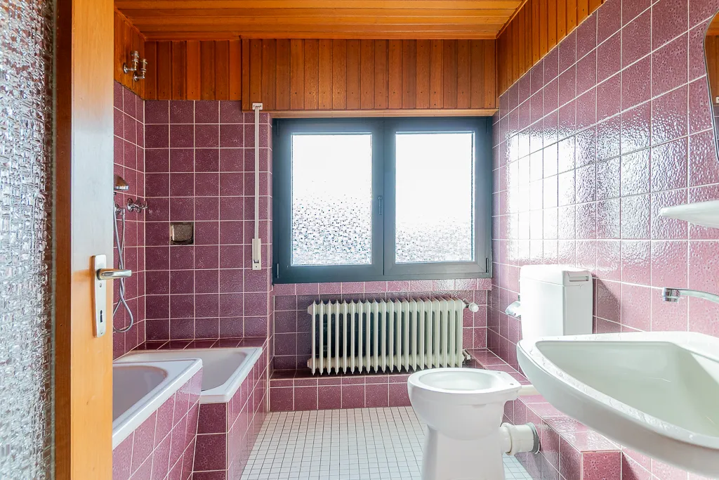 Im 1. Obergeschoss erwarten Sie 3 große Schlafzimmer, ein Tagslichtbad mit Dusche und Badewanne und ein zusätzliches WC, welches bei Bedarf zu einem vollwertigen Bad umgestaltet werden kann. Zwei weitere Räume wurden bislang als Küche sowie als zusätzliches Wohn- und Schlafzimmer im Rahmen eines Mehrgenerationenhaushalts genutzt. Der Balkon ist sowohl vom Elternschlafzimmer als auch von der bisherigen Küche aus begehbar.