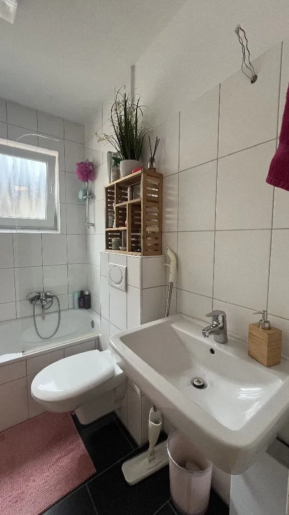 Renoviert, Fliesen und Laminat, Hänge-WC im Badezimmer und Gäste-WC, elektrischer Durchlauferhitzer, Gegensprechanlage, Rauchwarnmelder, Gaszentralheizung.