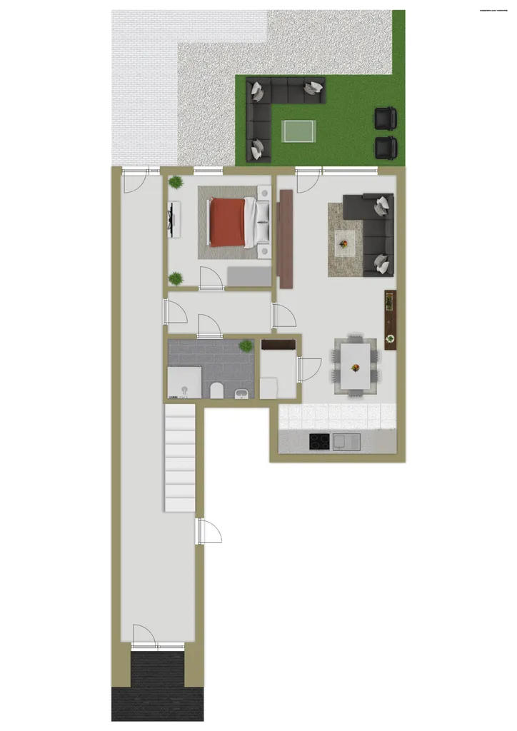 - 2 Zimmer (Flur, Schlafzimmer, offener Wohn-, Ess- und Kochbereich)