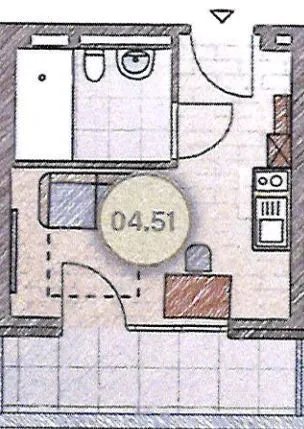 Ideal für eine Person bietet das Apartment alles, was Sie für einen komfortablen Alltag benötigen: eine clevere Raumaufteilung, eine praktische Pantryküche, ein eigenes Bad und eine angenehme Fußbodenheizung für die kälteren Tage. Der Aufzug bringt Sie bequem in alle Etagen – praktisch, wenn es mal mehr zu tragen gibt.