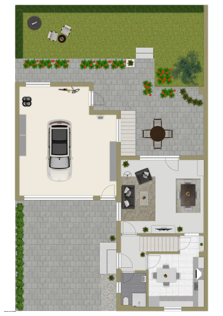 - Große Garage und Hobbybereich: Die großzügige Garage bietet ausreichend Platz für Auto, Werkbank und Hobbyprojekte. Ein elektrisch betriebenes