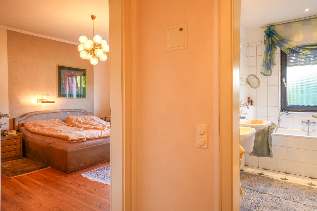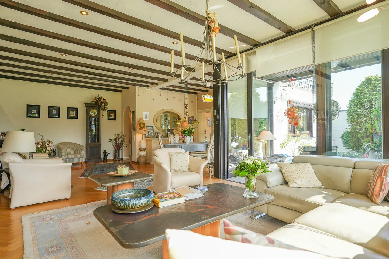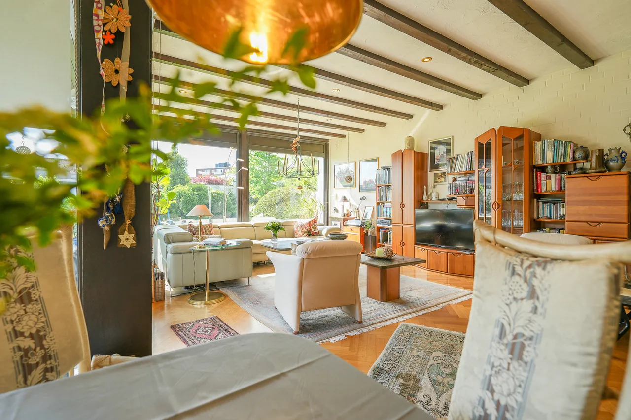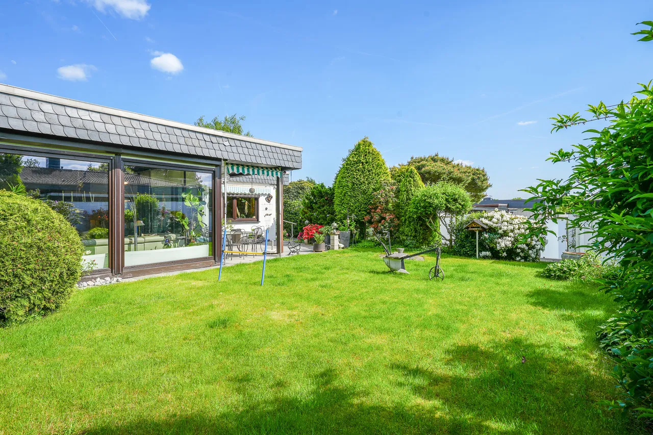 Auf einem liebevoll eingefriedeten Grundstück mit 656 m² empfängt Sie ein Zuhause, das Weite und Geborgenheit vereint. Die klare Formensprache der 1970er Jahre trifft hier auf eine durchdachte Renovierung und Modernisierung mit Substanz – behutsam umgesetzt zwischen 2003 und 2005, mit Blick fürs Detail und Sinn für Qualität.