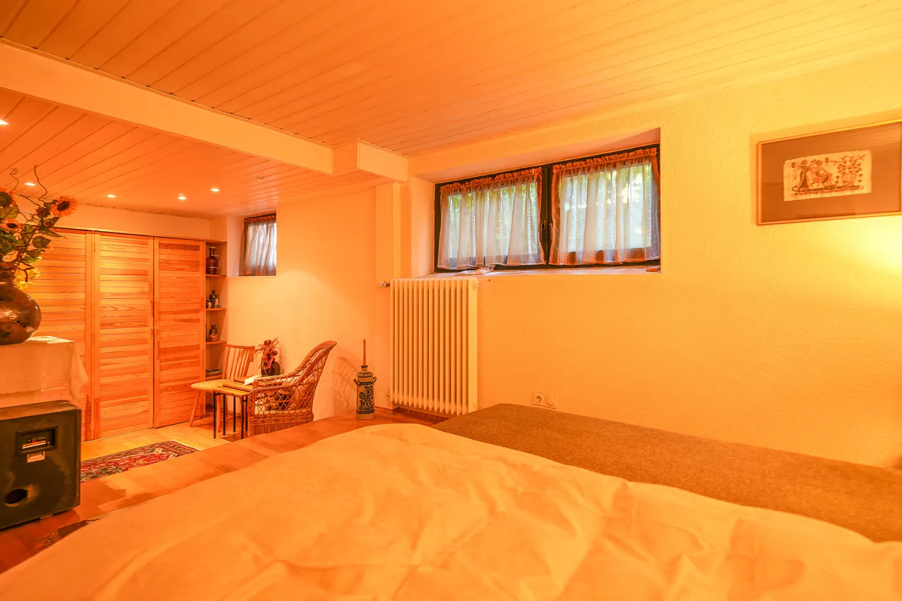 Das Untergeschoss überrascht mit seiner Vielfalt: Ein weiteres Gästezimmer mit Ankleidebereich, ein Saunaraum mit Dusche sowie mehrere flexibel nutzbare Räume schaffen Raum für Hobbys, kreative Projekte oder einfach für das, was das Leben mit sich bringt. Alles mit derselben Klarheit, wie sie das gesamte Haus ausstrahlt.