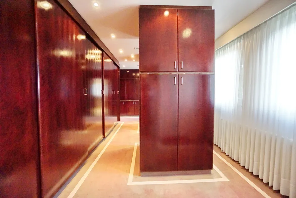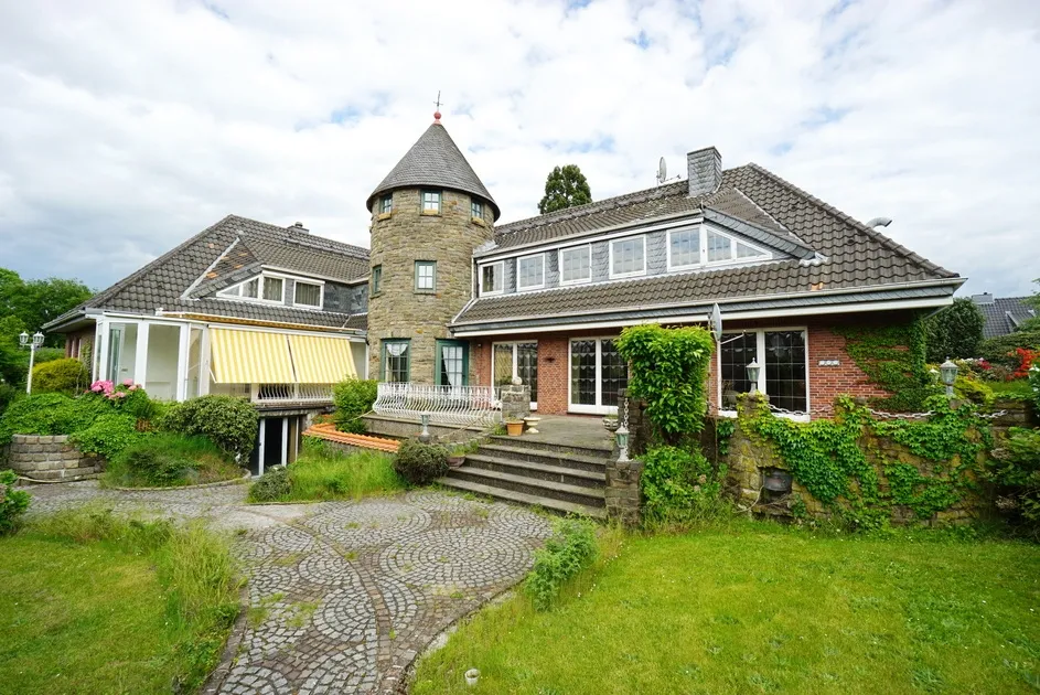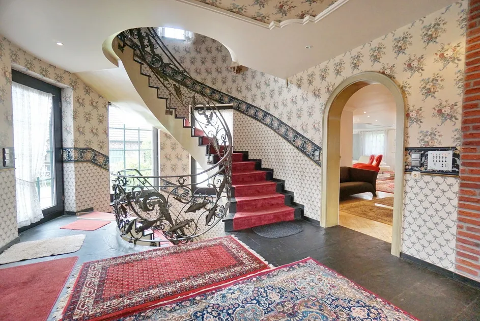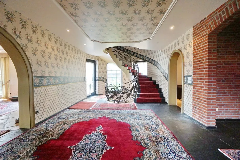 Der imposante Eingangsbereich mit einem herrschaftlichen Treppenhaus im kleinen Zwiebelturm zieht sofort alle Blicke auf sich. Bereits hier lässt sich erahnen, welche Großzügigkeit diese Immobilie bietet. Viele Fenster und zahlreiche bodentiefe Terrassenelemente sorgen für lichtdurchflutete Räume, die sich ideal für verschiedene Stilarten eignen. Mit mehreren Schlafzimmern, Ankleidezimmern und Bädern ist dieses Haus perfekt für mehrere Generationen geeignet. Zur Nutzung als Zweifamilienhaus steht ein separater Eingang zur Verfügung. Dieser Bereich ist auch als Bürofläche ideal geeignet, sodass Sie Arbeit und Privatleben perfekt kombinieren können. Die offene Raumgestaltung ermöglicht es Ihnen, Ihre individuellen Vorstellungen zu verwirklichen und kreative Arbeitsbereiche zu schaffen.