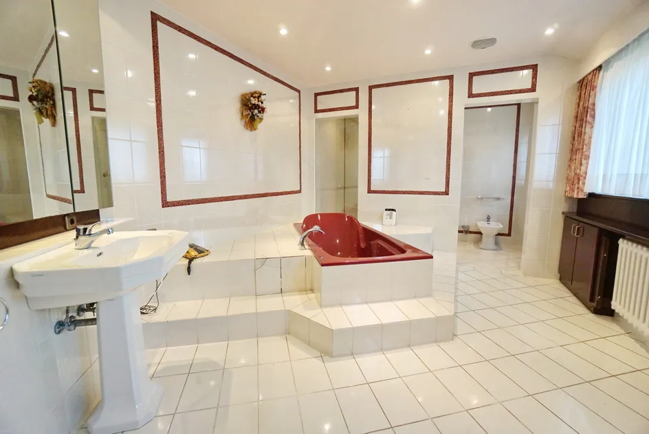 Die Immobilie ist voll unterkellert. Der großzügige Keller bietet Ihnen zusätzlich viel Platz für Hobbys, Lagerräume oder sogar einen Fitnessbereich. Zudem finden Sie hier einen sanierungsbedürftigen Poolbereich mit Sauna. Die Ausstattung der Immobilie befindet sich im baujahrestypischen Zustand und Stil der 1980er Jahre. Auch Innenarchitektonisch sind diese Stilelemente erkennbar. Die Immobilie ist mit einer Fußbodenheizung ausgestattet, welche über die Gaszentralheizung beheizt wird.