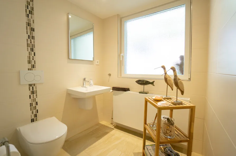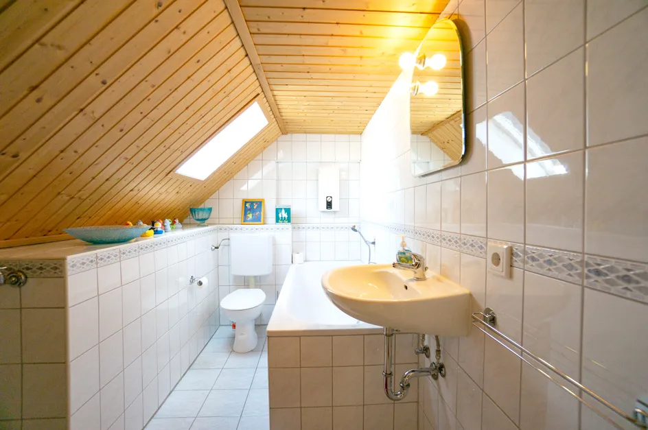 | Bad mit Dusche, Wanne, Fenster |
