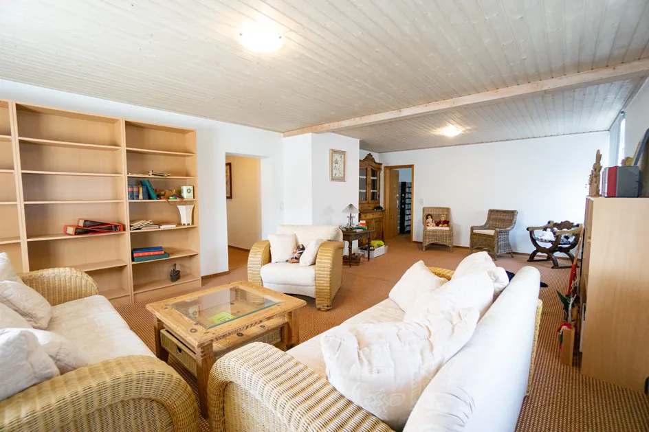 Der Wohnbereich der Immobilie zeichnet sich durch großzügige Räume aus, die einen harmonischen Übergang zwischen Innen- und Außenbereich schaffen. Zahlreiche Fenster lassen viel Tageslicht herein, so dass Sie stets von einer angenehmen Atmosphäre umgeben sind.