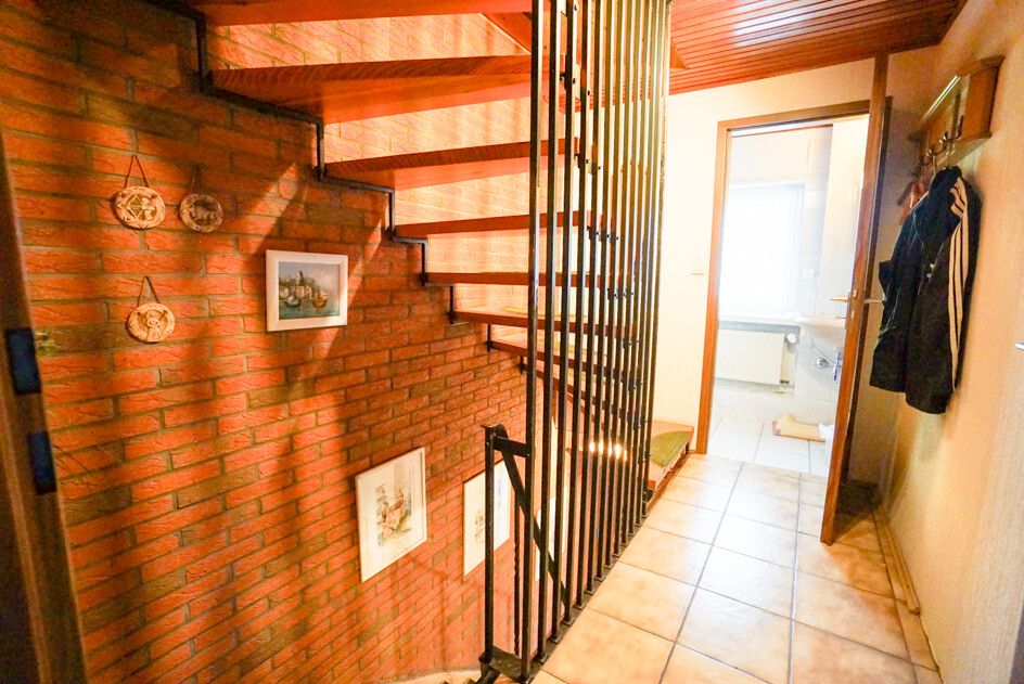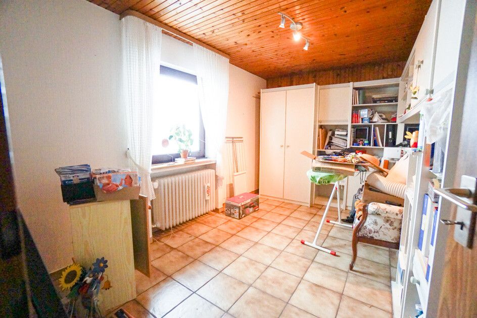 Im Obergeschoss befinden sich drei gut geschnittene Zimmer, woraus auch einfach vier Schlafräume entstehen könnten. Hier ist ein Gäste-WC auf dem Flur installiert. Die Immobilie wurde teilweise als Zweifamilienhaus genutzt, weshalb eine Küche eingebaut wurde. Durch eine Aufstockung im Jahr 1969 sind im Dachgeschoss keine Schrägen vorhanden und es wurde zusätzliche Wohnfläche gewonnen.