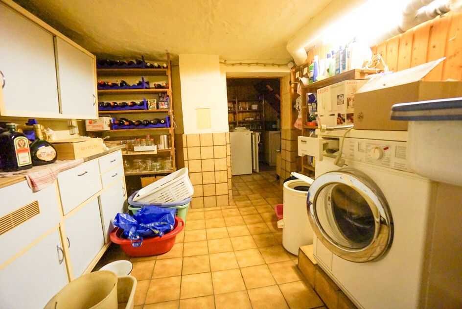 Die Nutzfläche des Dachgeschosses ist wohnlich ausgebaut. Hier befinden sich ein Zimmer und ein Badezimmer mit Wanne und Dusche. Das Kellergeschoss bietet einen praktischen Abstellraum sowie einen großen Hobbyraum.