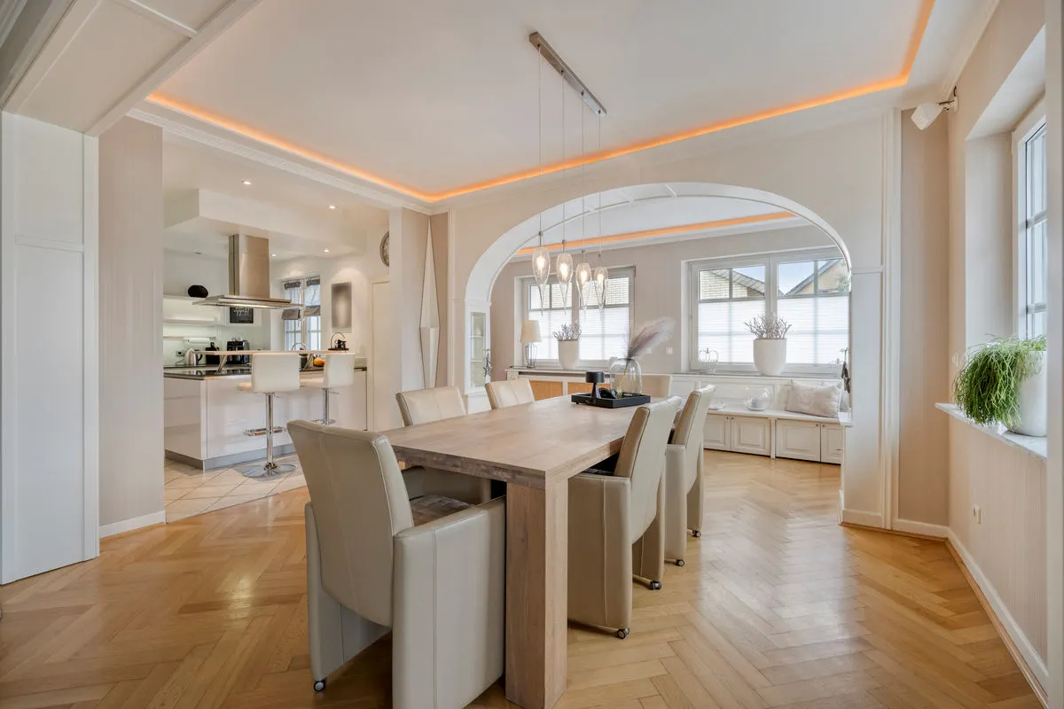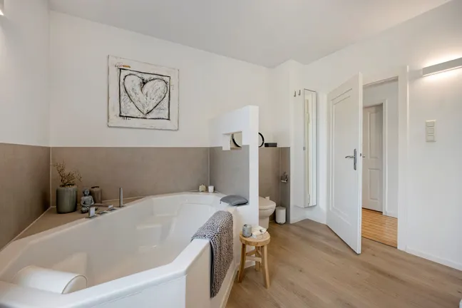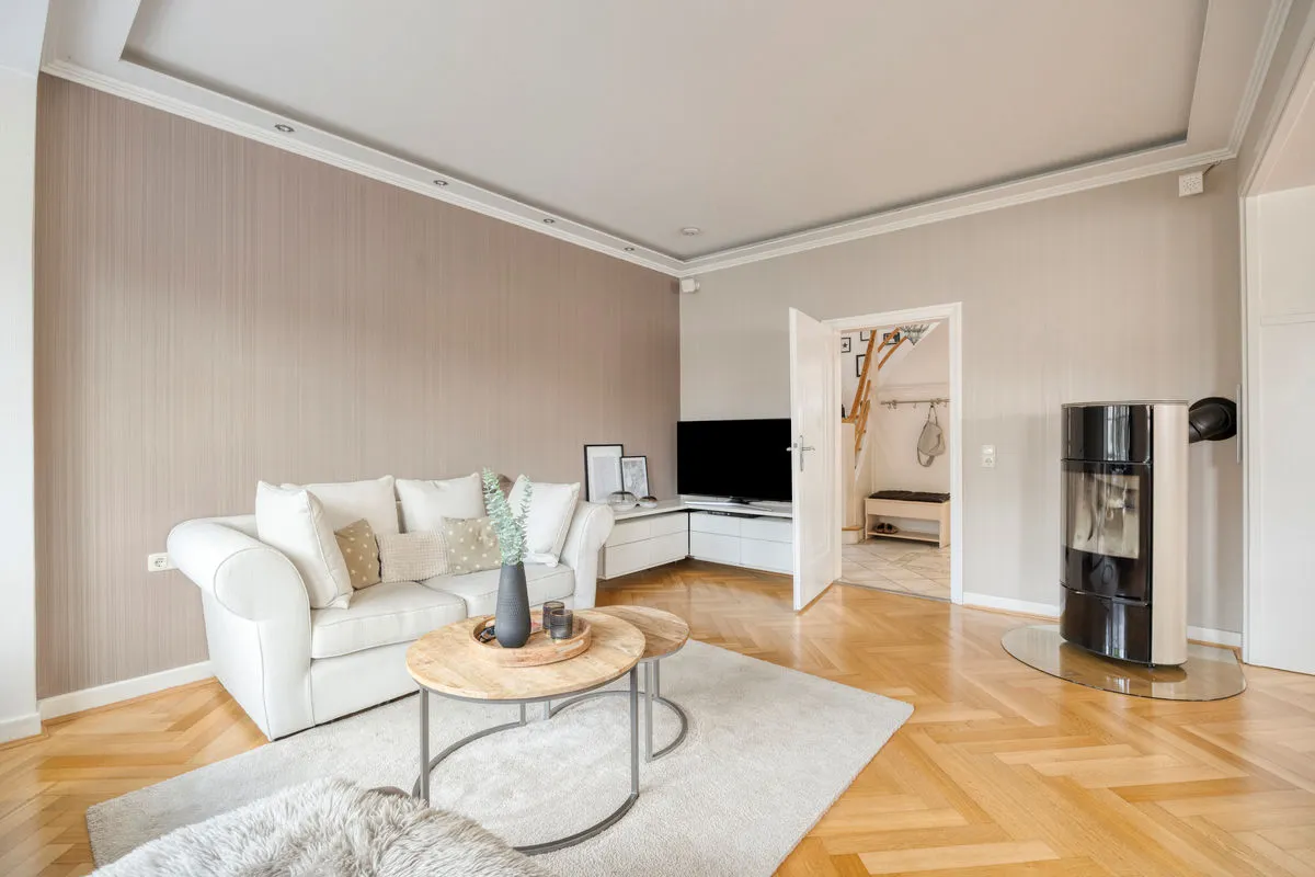 Im Zuge der umfassenden Modernisierung ab dem Jahr 2002 wurde die Immobilie technisch auf einen zeitgemäßen Stand gebracht. Sämtliche Wasser- und Abwasserleitungen, die Elektro- und Heiztechnik die Dachdämmung und der Innenausbau wurden erneuert, ebenso die komplette Haustechnik, sodass sich das Haus heute in einem gepflegten und funktional überzeugenden Zustand präsentiert. Die Verbindung aus historischer Substanz und erneuerter Technik schafft ein Wohnambiente, das gleichermaßen stilvoll wie zukunftssicher ist.
