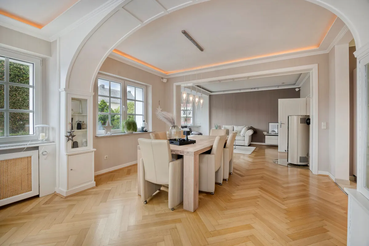 Das weitläufige Grundstück mit einer Größe von 1.120 m² bietet darüber hinaus ein hohes Maß an Privatsphäre, Großzügigkeit und Gestaltungsspielraum. Insgesamt handelt es sich um ein Anwesen mit besonderer Ausstrahlung, das architektonische Eigenständigkeit, solide Modernisierung und ein großzügiges Grundstück auf harmonische Weise vereint.