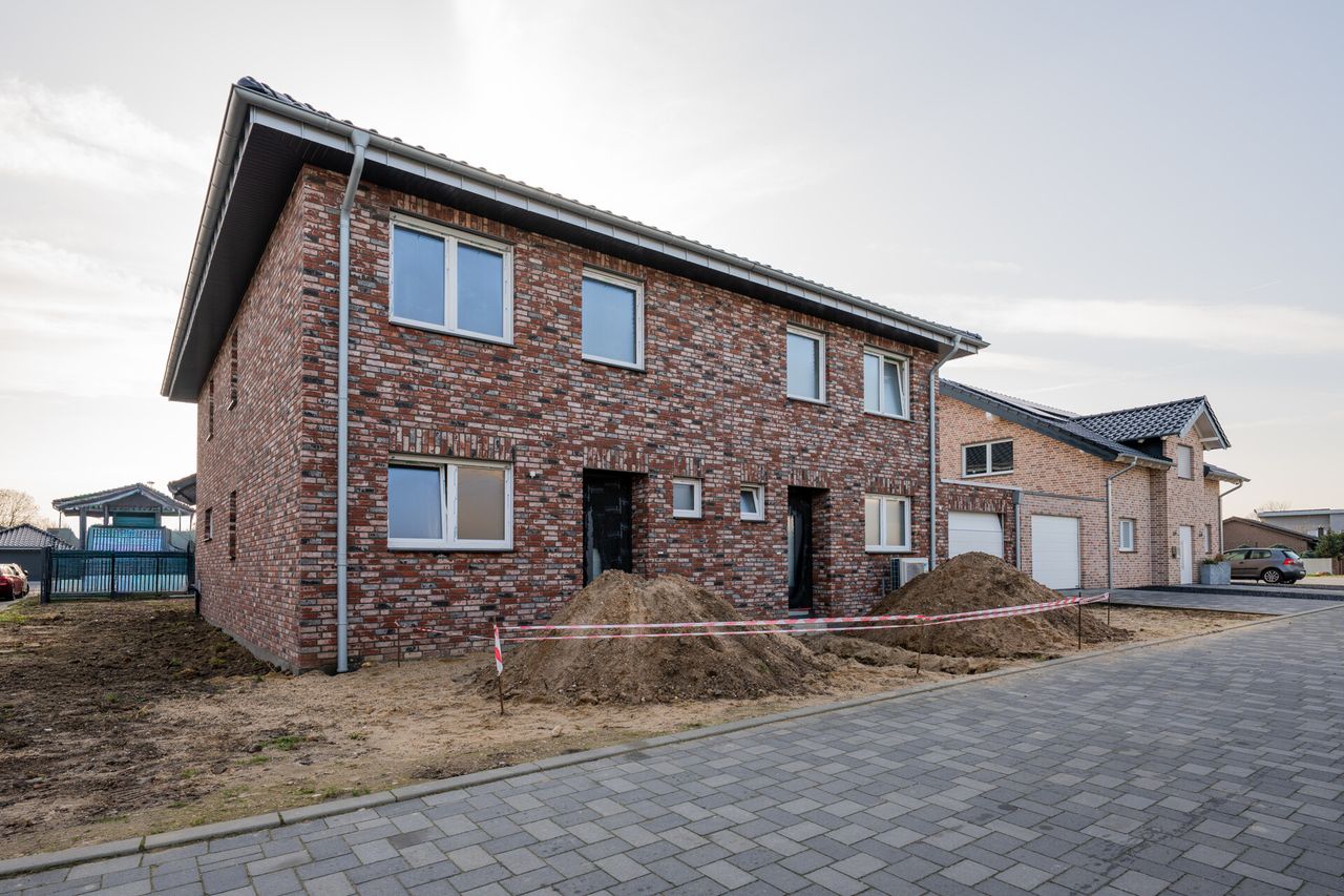 Die Immobilie wird im Innenausbauzustand übergeben. Bodenbeläge, Malerarbeiten, Sanitärausstattung, die Gestaltung der Außenanlagen sowie die Zufahrt und der Vorgarten können vom Käufer individuell umgesetzt werden. Strom-, Wasser- und Heizungsleitungen sowie eine Luftwärmepumpe sind bereits installiert.