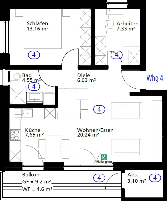 * Die Balkongröße ist zu 50% in der Wohnfläche enthalten.