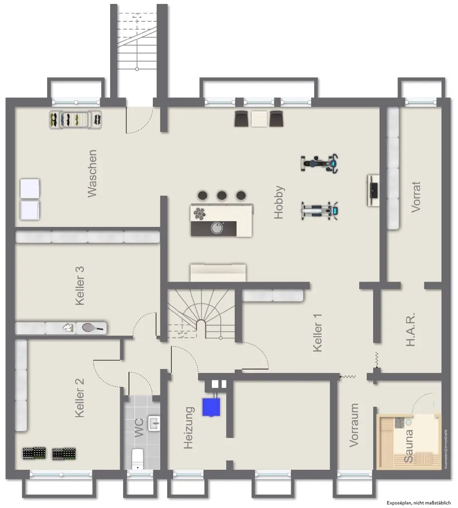 Im Untergeschoss stehen unter anderem zur Verfügung: