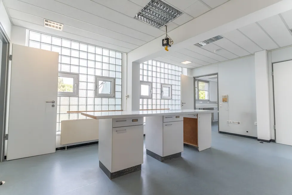 Zuletzt wurde das Objekt als Labor genutzt: Gas- und Wasseranschlüsse in vielen Räumen, ein Transportaufzug für Kleingüter, eine (aktuell nicht genutzte) Belüftungsanlage sind vorhanden, sodass eine schnelle Inbetriebnahme für ähnliche Zwecke erleichtert wird.